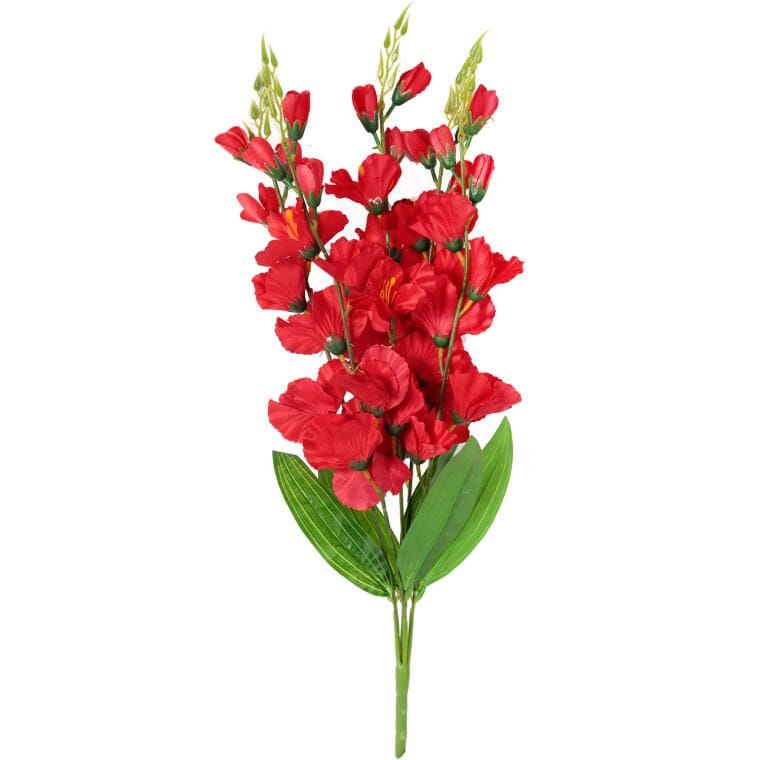 Sztuczny bukiet 5 gladioli w kolorze czerwonym to wyjątkowa dekoracja wykonana z materiałów najwyższej jakości, dzięki którym kwiaty wyglądają niezwykle realistycznie. Idealnie sprawdzi się jako samodzielna ozdoba, dodając elegancji i wyrazistości wnętrzom, a także w kompozycjach florystycznych, wnosząc świeżość i styl do każdej aranżacji. Ten efektowny bukiet o wysokości 60 cm doskonale wkomponuje się w wystrój domu, biura, a także na specjalne okazje, stanowiąc elegancki akcent dekoracyjny. Intensywny czerwony kolor przyciąga wzrok i dodaje wnętrzom niepowtarzalnego charakteru.