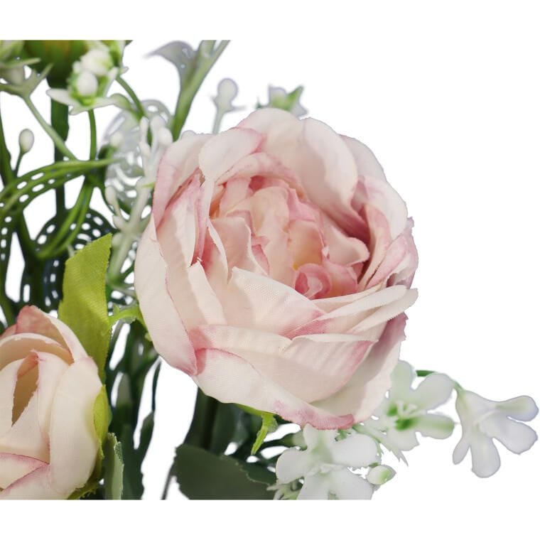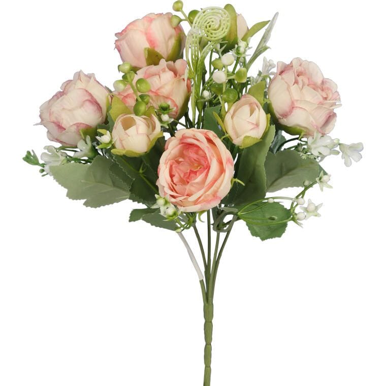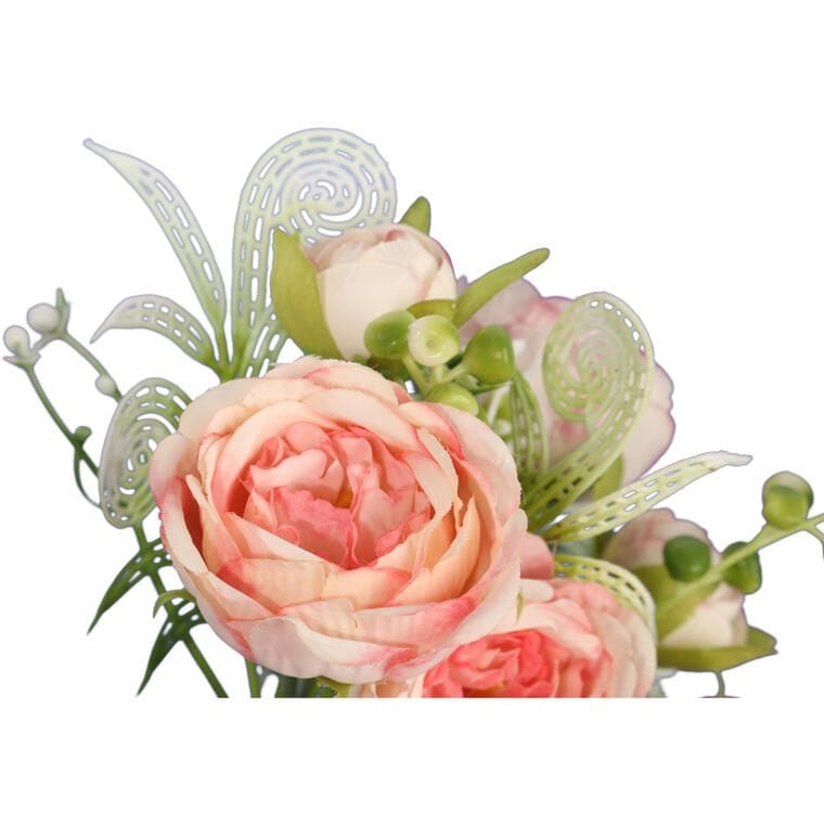 Bukiet sztucznych kwiatów składający się z 5 gałązek pełnych mini piwonii to idealny sposób na udekorowanie wnętrza, nadając mu elegancji i naturalnego uroku. Dzięki wyjątkowej jakości materiału, kwiaty do złudzenia przypominają żywe, co czyni je doskonałym wyborem zarówno do samodzielnych aranżacji, jak i w kompozycjach florystycznych. Ten bukiet sztucznych piwonii sprawdzi się jako ozdoba w domu, biurze, a także w dekoracjach okolicznościowych, wprowadzając do wnętrza świeżość i harmonię. Wielkość 35 cm sprawia, że bukiet jest kompaktowy, a jednocześnie wyrazisty, dodając każdej przestrzeni wyjątkowego charakteru.