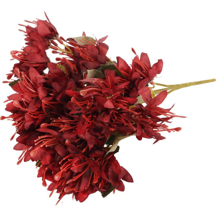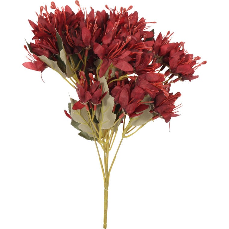 Sztuczny bukiet złożony z 5 gałązek kwiatów azalii to wyjątkowa dekoracja, która doskonale imituje naturalne rośliny, dzięki czemu wygląda niemal jak żywy. Wykonany z materiałów o wysokiej jakości, ten bukiet idealnie nadaje się zarówno jako samodzielna ozdoba, jak i element większych aranżacji florystycznych. Intensywnie czerwony kolor kwiatów azalii nadaje kompozycji wyrazistości i elegancji, dzięki czemu stanowi idealny wybór do dekoracji stołów, komód, parapetów czy innych przestrzeni domowych lub biurowych. Bukiet ma 30 cm wysokości, co czyni go kompaktowym, ale jednocześnie wystarczająco wyrazistym, aby przyciągać uwagę i wprowadzać do wnętrz świeży, naturalny akcent. Realistyczny wygląd sztucznych kwiatów sprawia, że bukiet ten nie wymaga pielęgnacji, zachowując przez długi czas swoją atrakcyjność. Jest to doskonały wybór dla osób ceniących trwałe, a jednocześnie estetyczne dekoracje, które nie wymagają skomplikowanej obsługi. Bukiet kwiatów azalii w czerwonym kolorze świetnie sprawdzi się jako dekoracja zarówno nowoczesnych, jak i klasycznych wnętrz, wnosząc do nich odrobinę romantyzmu i wyrafinowanego stylu. Jest to również idealny pomysł na prezent dla miłośników kwiatowych aranżacji, którzy pragną cieszyć się pięknem kwiatów przez cały rok.