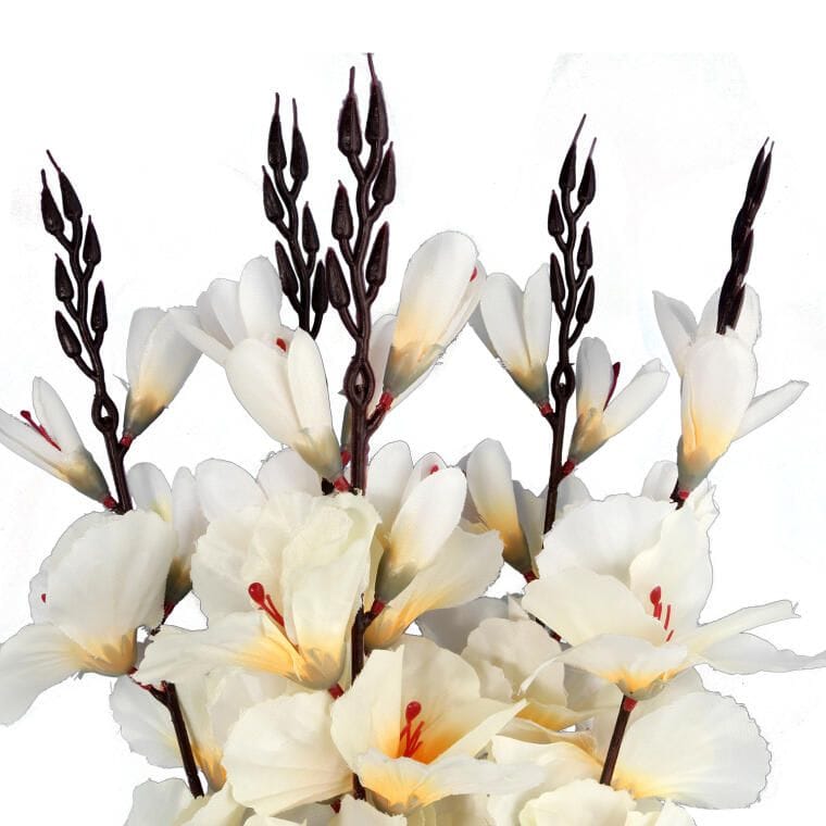Sztuczny bukiet pięciu gladioli o długości 65 cm to doskonała dekoracja, która wprowadzi do Twojego wnętrza świeżość i elegancję. Wykonany z wysokiej jakości materiałów, ten bukiet wygląda jak żywy, co sprawia, że jest idealnym rozwiązaniem dla osób poszukujących trwałych i efektownych ozdób. Gladiole, symbolizujące siłę i niezłomność, wspaniale prezentują się zarówno jako samodzielna dekoracja, jak i w różnorodnych kompozycjach florystycznych, dodając uroku i stylu każdemu pomieszczeniu. Bukiet doskonale nadaje się do wazonów, na stół, czy jako element aranżacji w biurze lub salonie. Sztuczny bukiet gladioli to idealny wybór na wszelkie okazje, od codziennych dekoracji po wyjątkowe wydarzenia, takie jak urodziny czy wesela. Dodaj odrobinę koloru i elegancji do swojego otoczenia z tym wyjątkowym bukietem, który z pewnością przyciągnie wzrok i stworzy przytulną atmosferę.