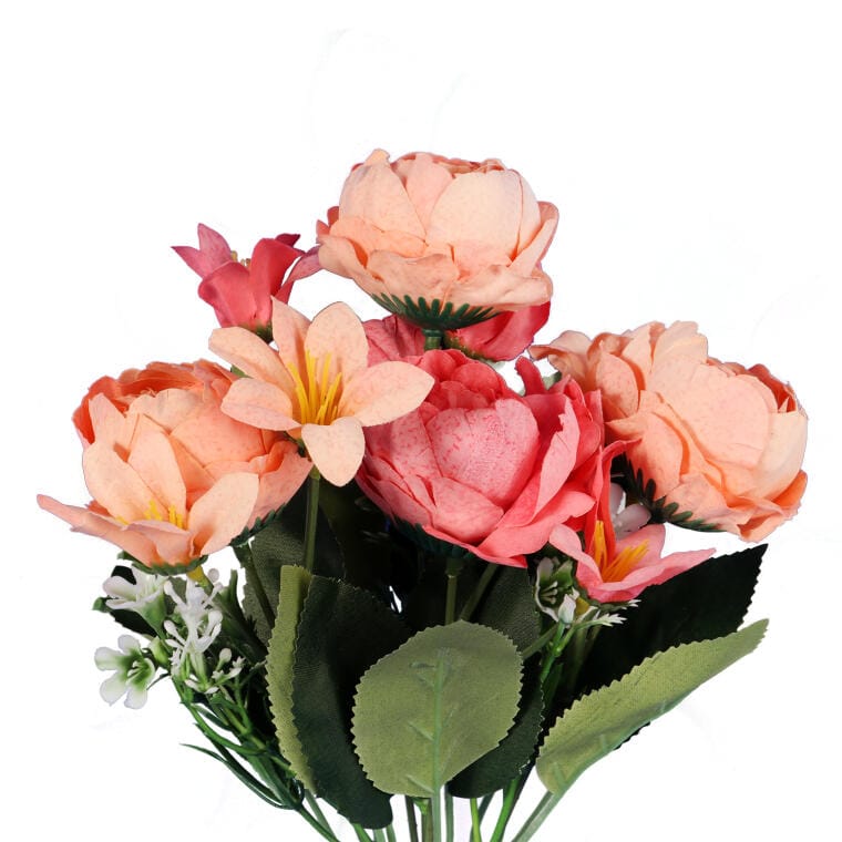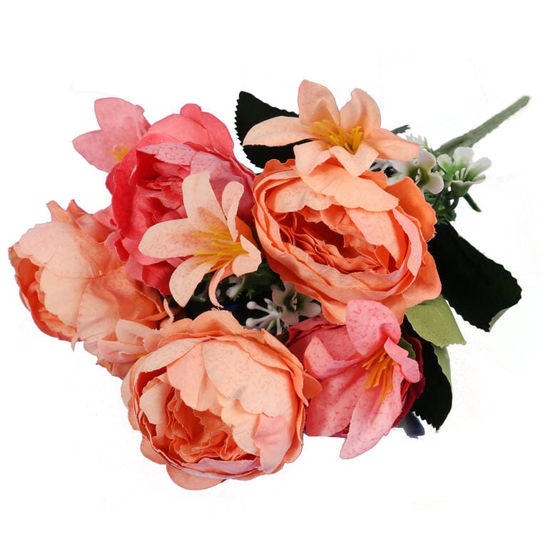 Sztuczny bukiet pięciu piwonii to doskonały wybór dla osób poszukujących eleganckiej dekoracji, która doda uroku każdemu wnętrzu. Wykonany z wysokiej jakości materiałów, ten bukiet charakteryzuje się realistycznym wyglądem, co sprawia, że do złudzenia przypomina żywe kwiaty. Idealnie sprawdzi się jako samodzielna ozdoba lub w różnorodnych kompozycjach florystycznych, wprowadzając do Twojego otoczenia subtelny i stylowy akcent przez cały rok. Sztuczny bukiet piwonii doskonale udekoruje także miejsca pamięci podczas święta Wszystkich Świętych, wnosząc szacunek i pamięć w te szczególne dni. Bukiet o długości 30 cm jest łatwy do aranżacji i idealnie wpasuje się w różnorodne stylizacje, zarówno nowoczesne, jak i klasyczne. Wybierając ten produkt, inwestujesz w piękno i trwałość, które będą cieszyć Twoje oczy przez długi czas.