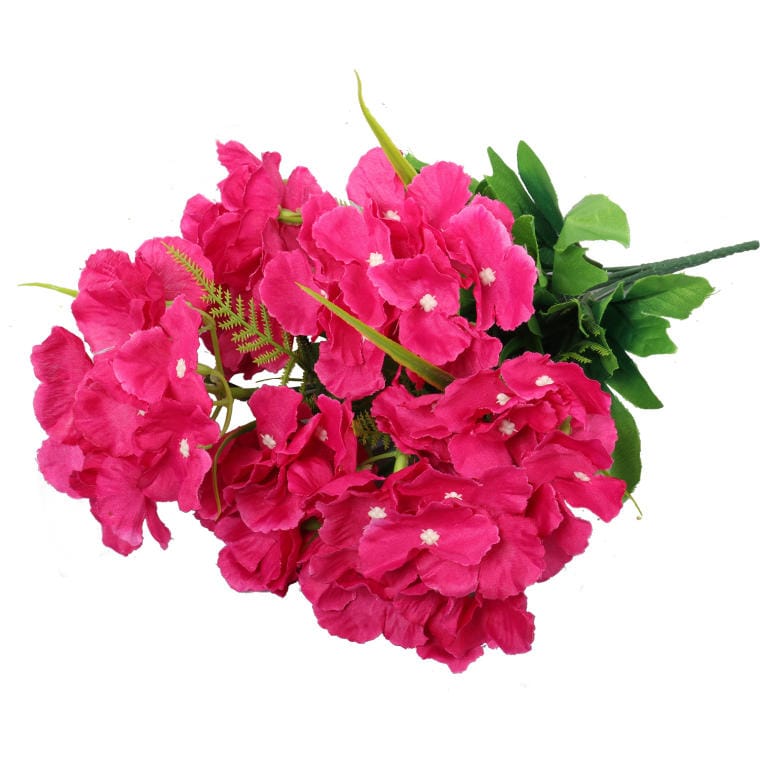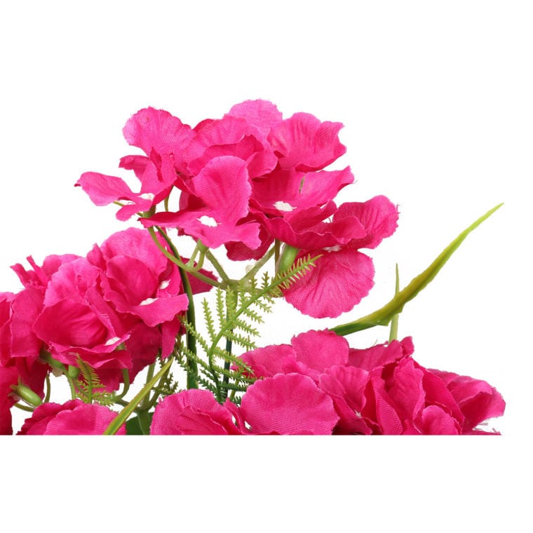 Bukiet sześciu hortensji z dodatkami w odcieniu ciemnego różu to elegancka kompozycja, która wprowadza do wnętrza atmosferę luksusu i romantyzmu. O wysokości 42 cm, ten starannie wykonany bukiet doskonale imituje naturalne kwiaty, co sprawia, że wygląda niezwykle realistycznie. Ciemnoróżowe hortensje, otoczone subtelnymi dodatkami, tworzą harmonijną całość, która pięknie zaprezentuje się zarówno w wazonie, jak i jako część większych aranżacji florystycznych. Ten wyjątkowy bukiet doskonale sprawdzi się jako stylowy akcent dekoracyjny w salonie, sypialni czy biurze, a także jako elegancka ozdoba na specjalne okazje. Dzięki swojej trwałości, kompozycja będzie cieszyć oko przez długi czas, nie wymagając żadnej pielęgnacji, co czyni ją idealnym rozwiązaniem dla miłośników piękna i estetyki w każdym wydaniu. Dodaj nutę wyrafinowania i koloru do swojego otoczenia dzięki temu wyjątkowemu bukietowi!