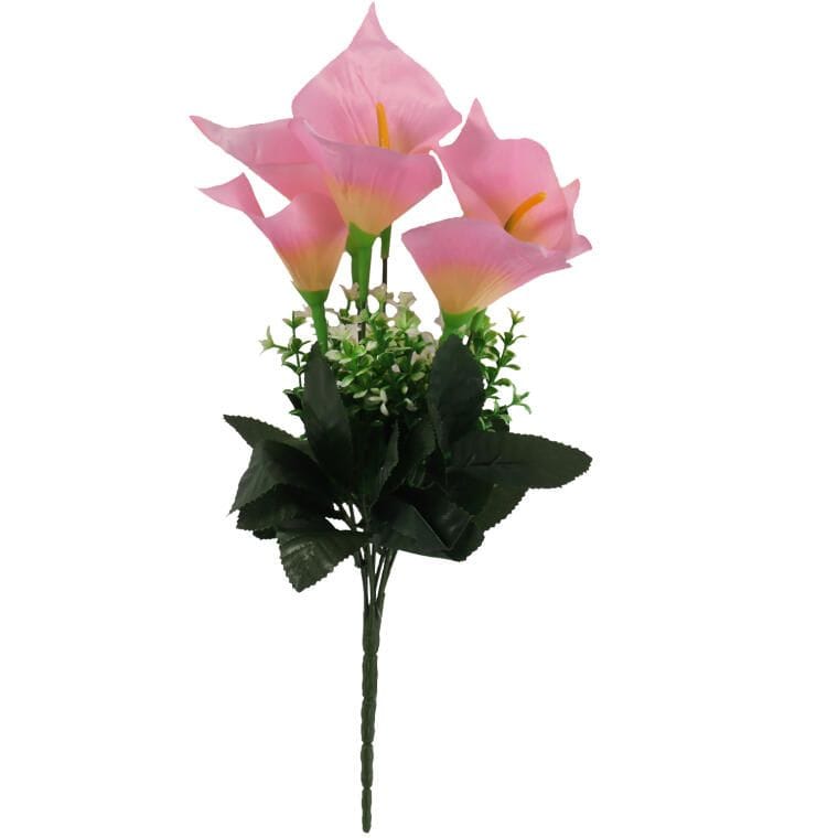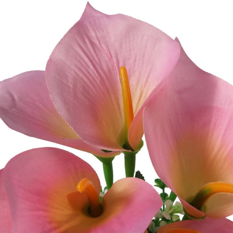 Kwiat sztuczny bukiet calli z bukszpanem o wysokości 37 cm w kolorze różowym to dekoracja, która dzięki wysokiej jakości materiałom do złudzenia przypomina żywe kwiaty. Bukiet wprowadza do wnętrza delikatny i romantyczny akcent, nadając aranżacjom przytulny i stylowy charakter. Doskonale sprawdzi się jako samodzielna ozdoba w wazonie oraz jako element większych kompozycji florystycznych, bukietów, stroików i dekoracji okolicznościowych. Starannie wykonany zapewnia trwałość i realistyczny wygląd przez wiele sezonów, podkreślając wyjątkowy styl każdej przestrzeni. Bukiet calli z bukszpanem to praktyczne i efektowne rozwiązanie dla osób poszukujących dekoracji imitujących żywe rośliny, które nie wymagają pielęgnacji, idealny do domu, biura i przestrzeni komercyjnych.