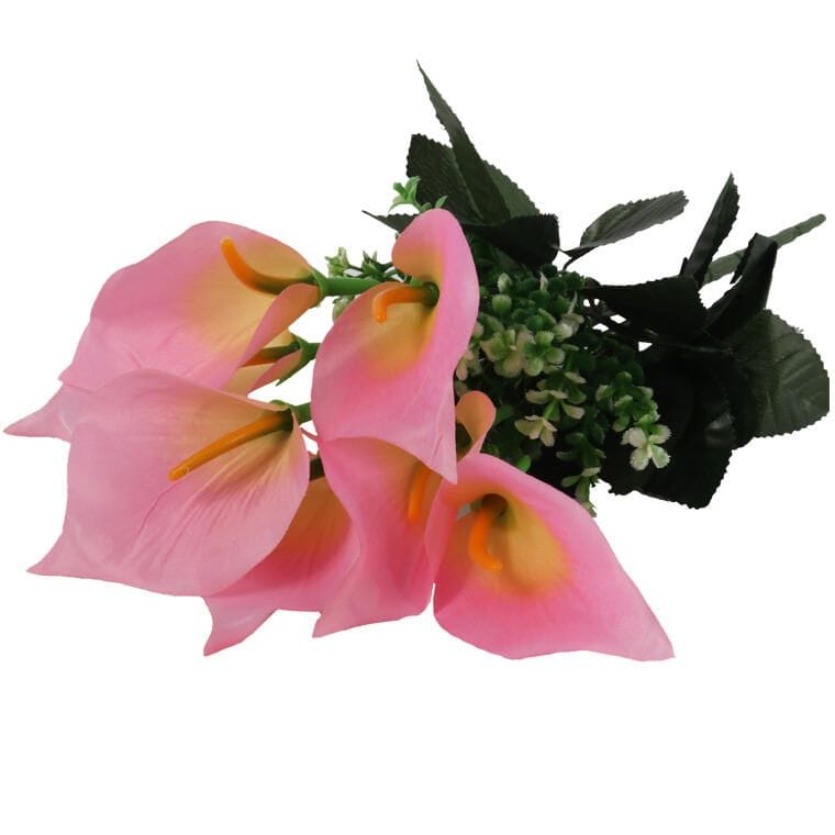 Bukiet 7 CALLI z bukszpanem 37 cm RÓŻOWY