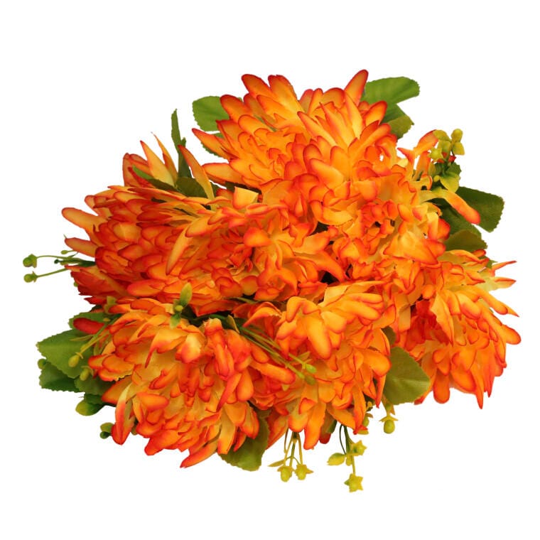 KWIATY SZTUCZNE BUKIET 7 CHRYZANTEM STRZĘPIASTYCH Z DODATKAMI Wysoka jakośc materiału powoduje, że kwiat do złudzenia wygląda jak żywy. Jako samodzielna dekoracja lub w kompozycji doskonale udekoruje Twoje miejsca pamięci podczas święta Wszystkich Świętych. Kolor : pomarańczowy Wielkość: 35cm