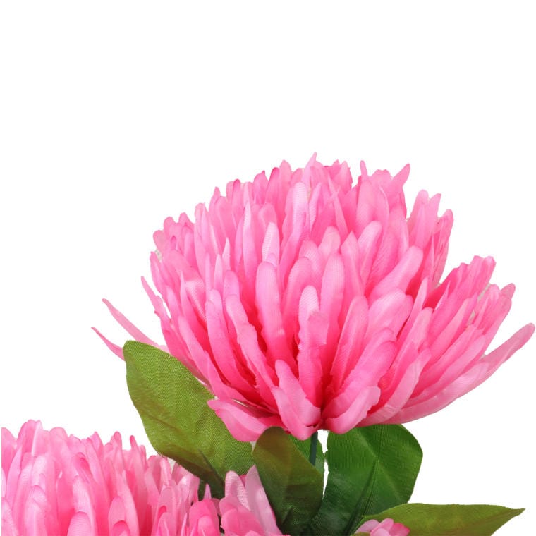 Różowe chryzantemy, wykonane z wysokiej jakości materiałów, doskonale imitują naturalne kwiaty, co sprawia, że bukiet wygląda niezwykle autentycznie. Kolor różowy symbolizuje miłość, przyjaźń i delikatność, dlatego jest doskonałym wyborem na różnorodne okazje – od romantycznych gestów po dekorację na przyjęcia czy spotkania rodzinne.