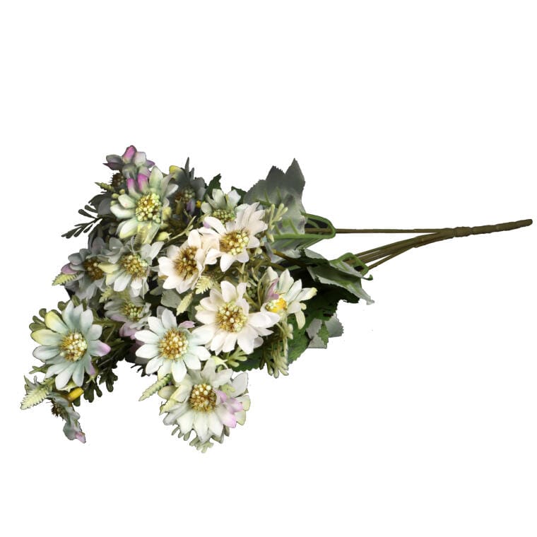 Sztuczny bukiet z 35 kwiatami chryzantemy to doskonała propozycja dekoracji o realistycznym wyglądzie, dzięki zastosowaniu wysokiej jakości materiałów, które sprawiają, że każda chryzantema wygląda niemal jak żywa. To idealne rozwiązanie, aby udekorować miejsca pamięci podczas Święta Wszystkich Świętych, ale także przez cały rok. Bukiet wyróżnia się eleganckim, biało-zielonym kolorem, który dodaje harmonii i spokoju każdej aranżacji. Doskonale komponuje się zarówno jako samodzielna dekoracja, jak i element większej kompozycji kwiatowej, podkreślając wyjątkowy charakter przestrzeni. Bukiet ma wysokość 35 cm, co czyni go praktycznym i estetycznym dodatkiem do każdej kompozycji nagrobnej.