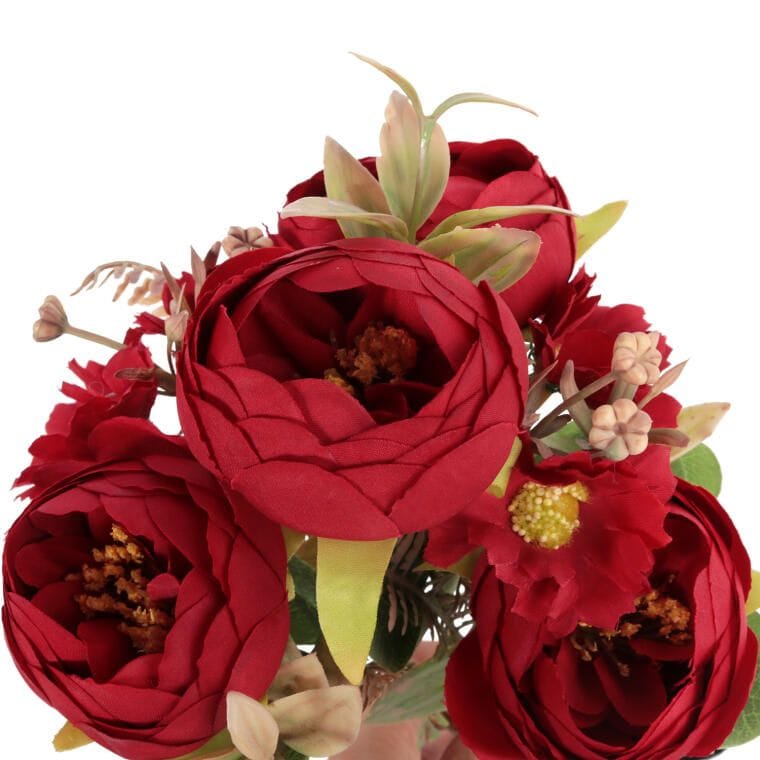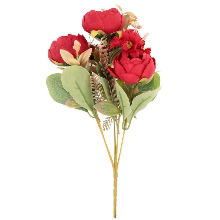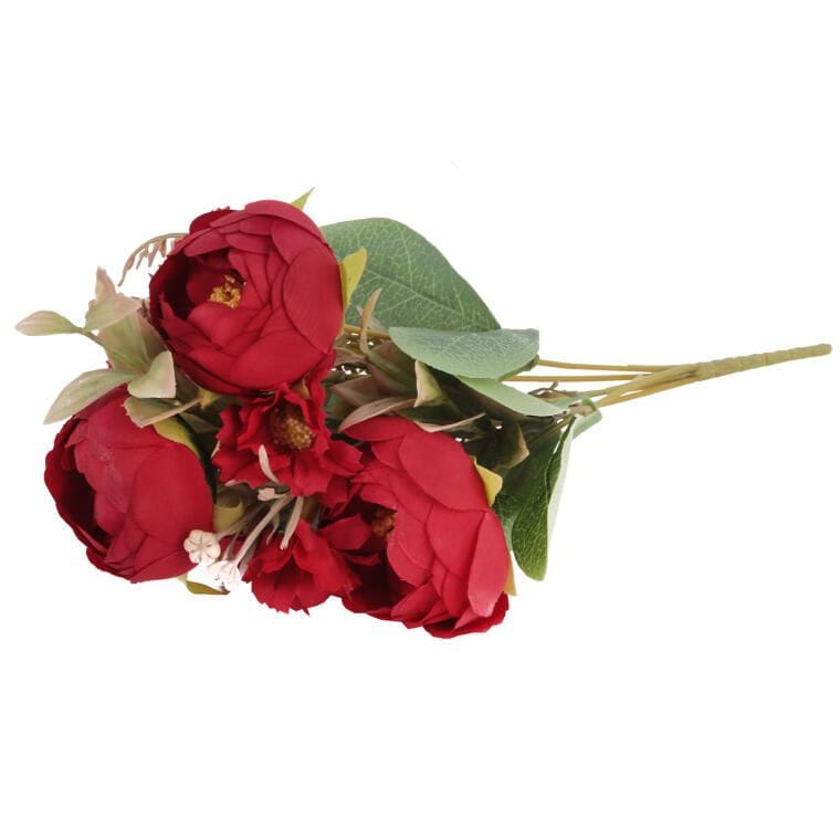 BUKIET 7 GAŁĄZEK Z PIWONIAMI I MARGARETKAMI 30 CM KOLOR CZERWONY