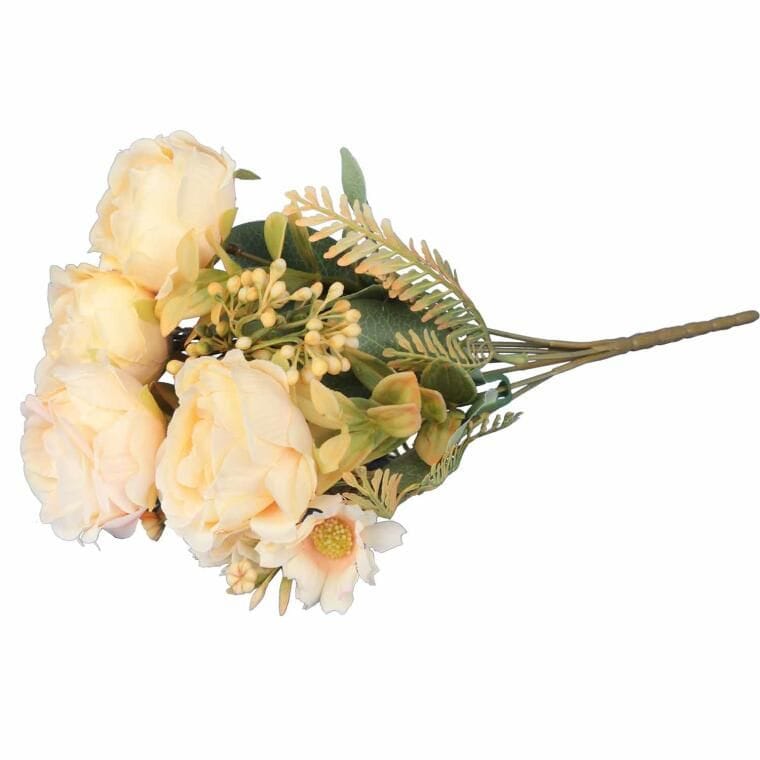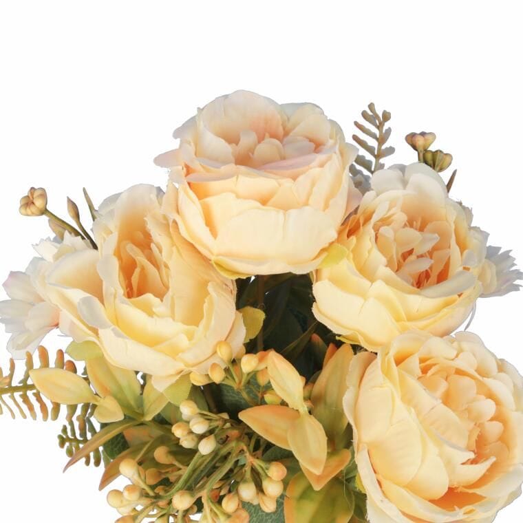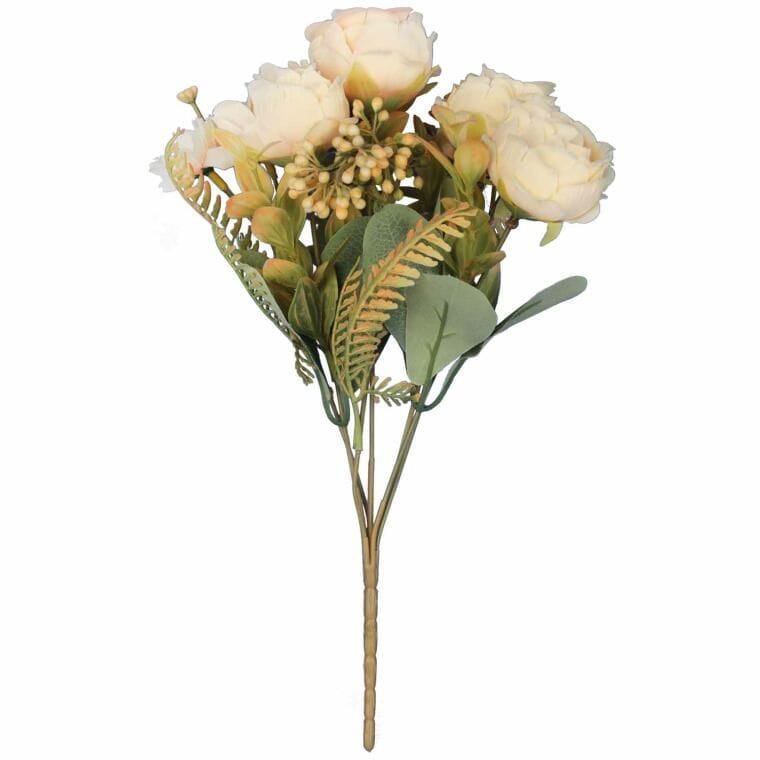 Sztuczny kwiat BUKIET 7 GAŁĄZEK Z RÓŻAMI I DODATKAMI to elegancka i stylowa dekoracja, która dzięki zastosowaniu wysokiej jakości materiałów do złudzenia przypomina żywe kwiaty. Precyzyjne wykonanie oraz dbałość o detale sprawiają, że róże i dodatki wyglądają naturalnie, co czyni ten bukiet idealnym elementem dekoracyjnym do różnorodnych aranżacji wnętrz. Doskonale sprawdzi się zarówno jako samodzielna ozdoba, jak i część bardziej złożonych kompozycji florystycznych, dodając uroku każdemu pomieszczeniu. Bukiet ten jest idealny do domu, biura, restauracji, czy innych miejsc, gdzie żywe kwiaty mogą być trudne w utrzymaniu. Sztuczne róże z dodatkami o wysokości 31 cm świetnie prezentują się w wazonach, nadając przestrzeni świeżości i elegancji przez cały rok. Trwałość materiałów zapewnia, że bukiet będzie wyglądał pięknie przez długi czas, nie wymagając żadnej pielęgnacji. To doskonałe rozwiązanie dla osób, które cenią sobie estetykę, wygodę i łatwość utrzymania dekoracji, jednocześnie wprowadzając do otoczenia subtelną elegancję i klasyczny urok.