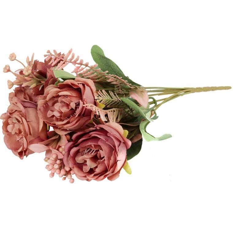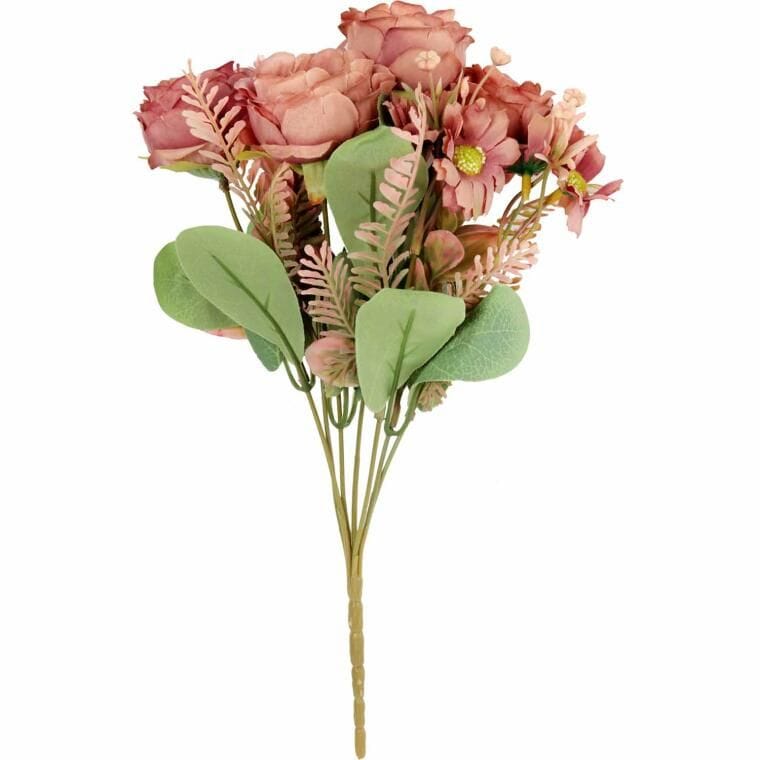 Sztuczny kwiat BUKIET 7 GAŁĄZEK Z RÓŻAMI I DODATKAMI to elegancka i stylowa dekoracja, która dzięki zastosowaniu wysokiej jakości materiałów do złudzenia przypomina żywe kwiaty. Precyzyjne wykonanie oraz dbałość o detale sprawiają, że róże i dodatki wyglądają naturalnie, co czyni ten bukiet idealnym elementem dekoracyjnym do różnorodnych aranżacji wnętrz. Doskonale sprawdzi się zarówno jako samodzielna ozdoba, jak i część bardziej złożonych kompozycji florystycznych, dodając uroku każdemu pomieszczeniu. Bukiet ten jest idealny do domu, biura, restauracji, czy innych miejsc, gdzie żywe kwiaty mogą być trudne w utrzymaniu. Sztuczne róże z dodatkami o wysokości 31 cm świetnie prezentują się w wazonach, nadając przestrzeni świeżości i elegancji przez cały rok. Trwałość materiałów zapewnia, że bukiet będzie wyglądał pięknie przez długi czas, nie wymagając żadnej pielęgnacji. To doskonałe rozwiązanie dla osób, które cenią sobie estetykę, wygodę i łatwość utrzymania dekoracji, jednocześnie wprowadzając do otoczenia subtelną elegancję i klasyczny urok.