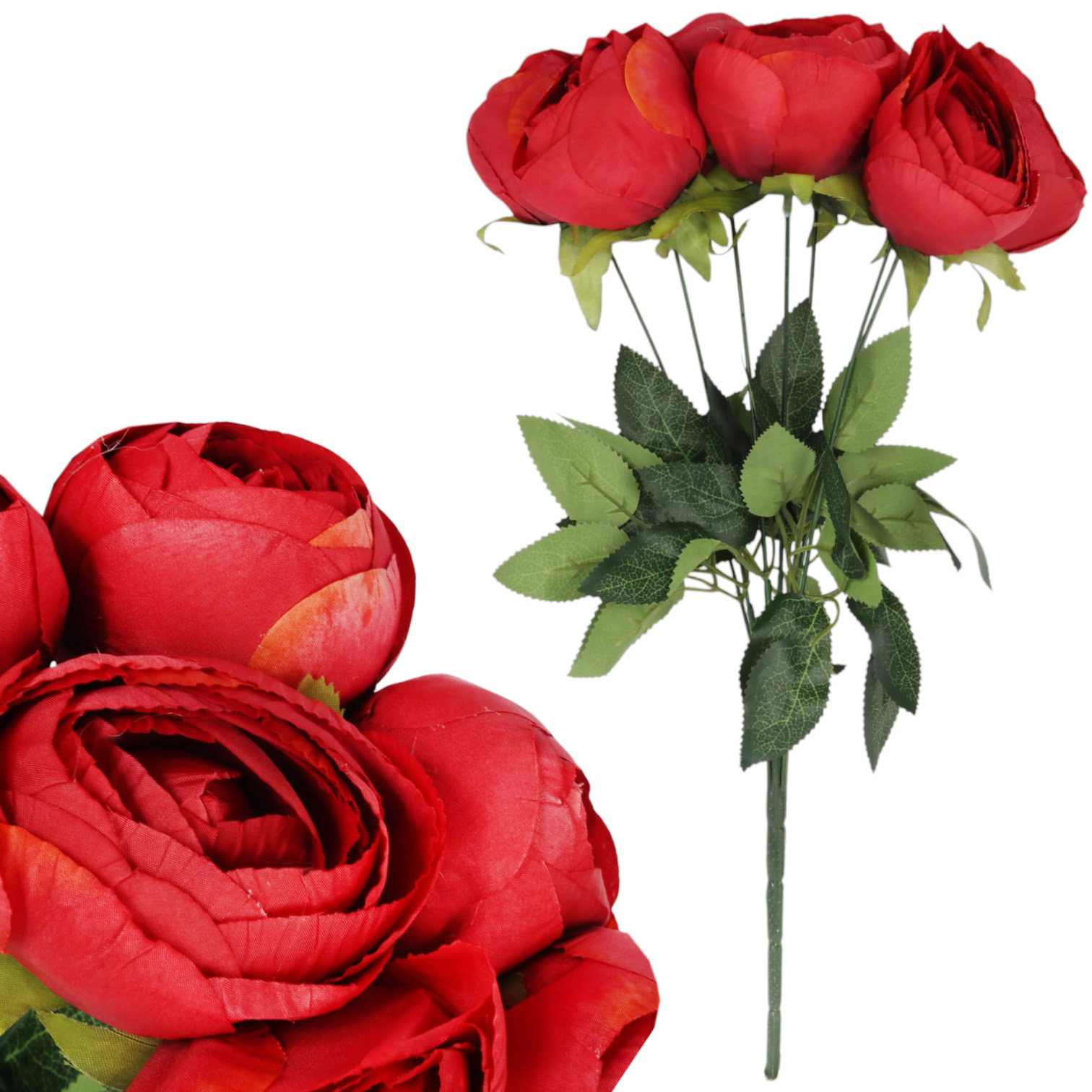 BUKIET 7 PIWONII sztuczne kwiaty do wazonu KOMPOZYCJA czerwona 48 cm