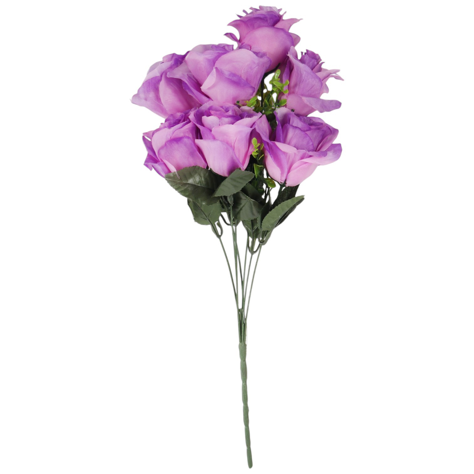 BUKIET 7 RÓŻ Z BUKSZPANEM fioletowy 52 cm