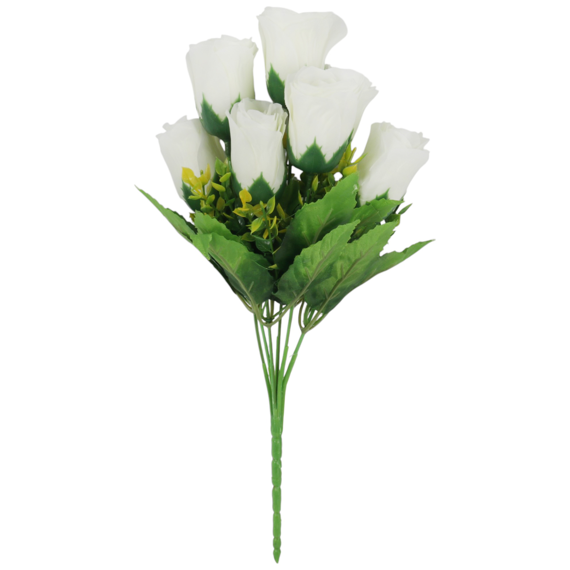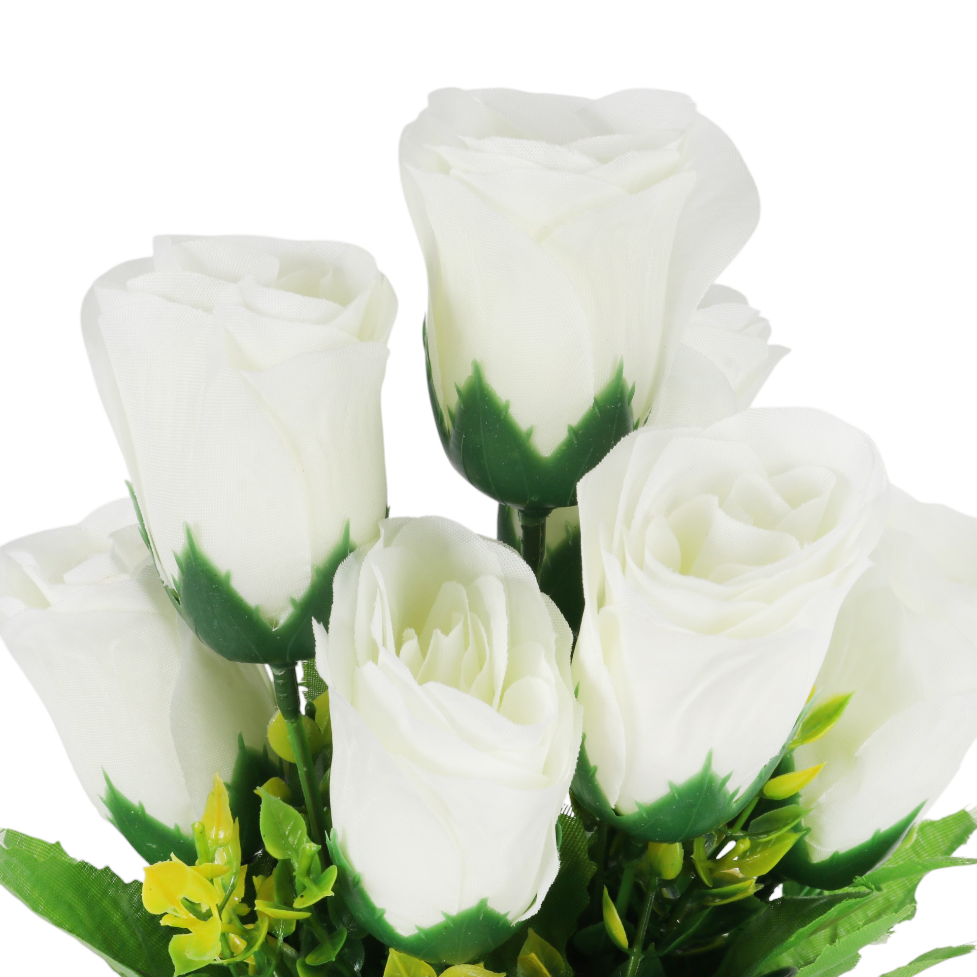 BUKIET 7 RÓŻ Z DODATKAMI sztuczne kwiaty do wazonu KOMPOZYCJA biała 35 cm