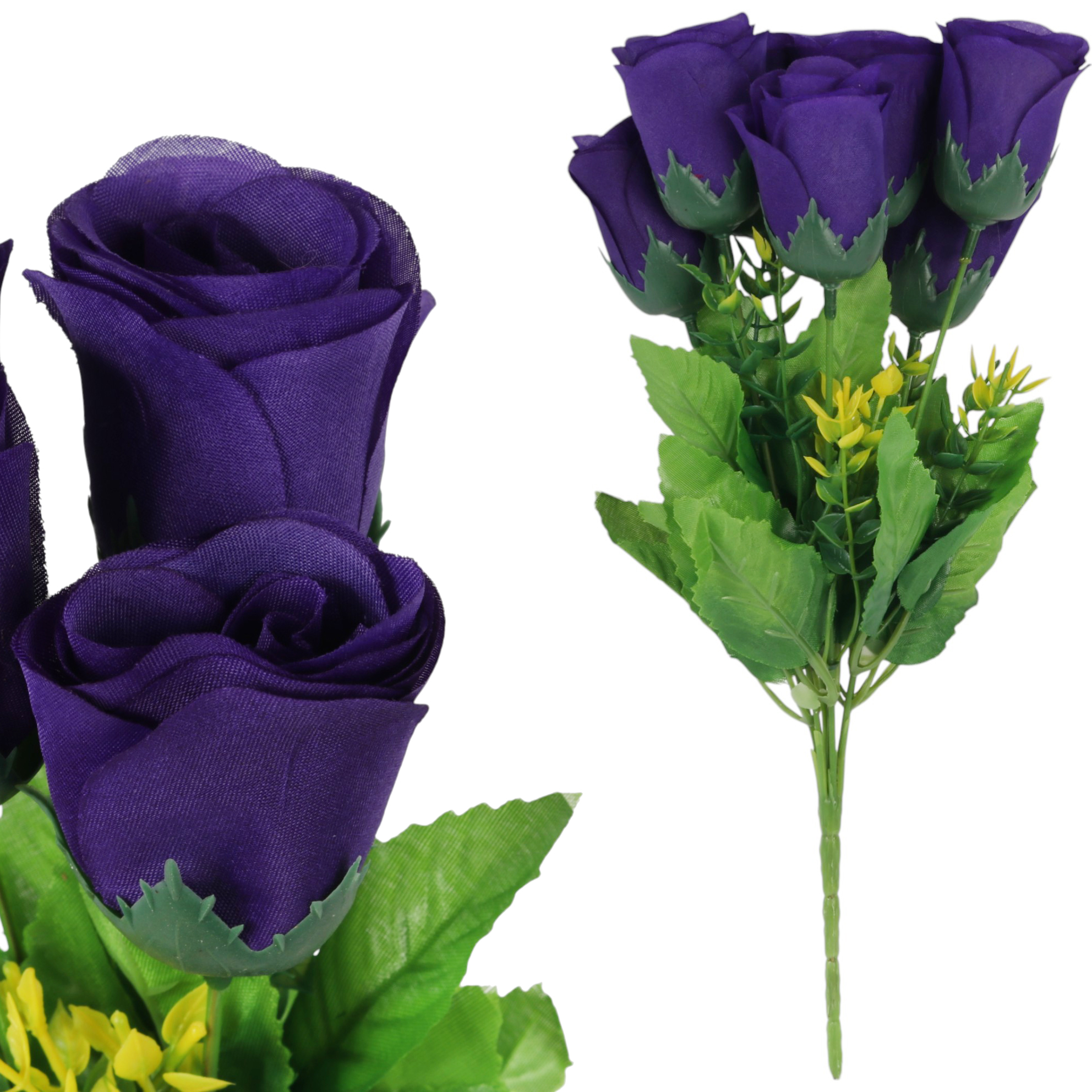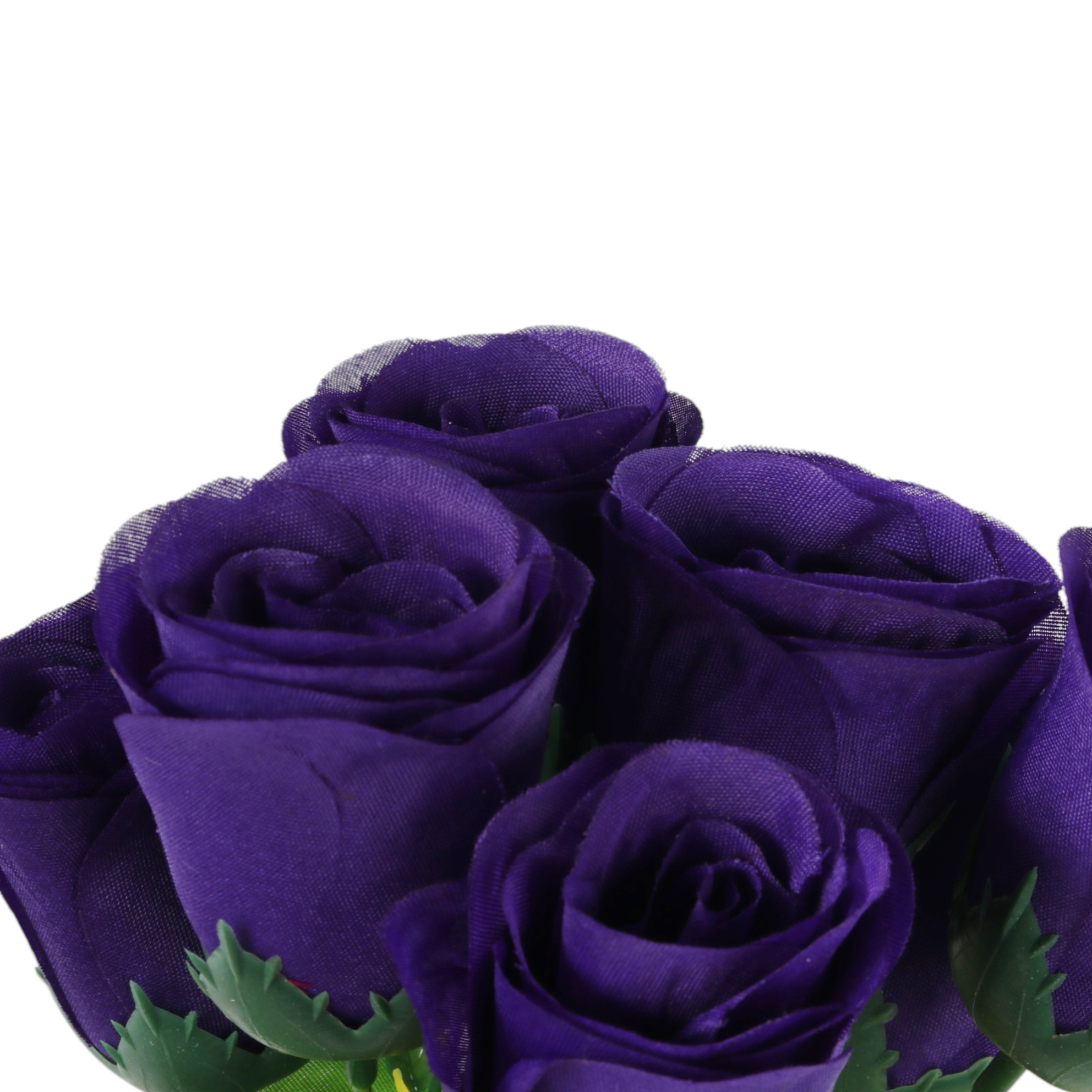 BUKIET 7 RÓŻ Z DODATKAMI sztuczne kwiaty do wazonu KOMPOZYCJA fioletowa 35 cm