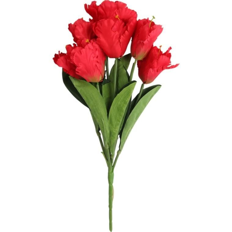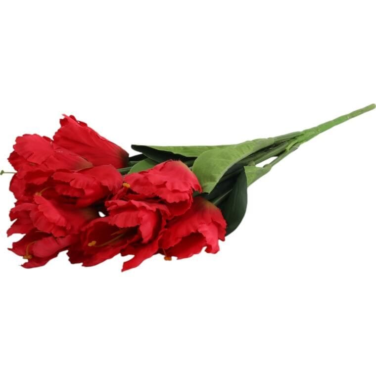 Sztuczny bukiet 7 tulipanów o wysokości 54 cm to elegancka dekoracja, która dzięki wysokiej jakości materiałom do złudzenia przypomina świeże, naturalne kwiaty. Realistyczne odwzorowanie kształtu płatków i liści sprawia, że bukiet prezentuje się niezwykle efektownie, wprowadzając do wnętrza wiosenną świeżość przez cały rok. Może być wyjątkową ozdobą w wazonie lub stać się częścią większej kompozycji kwiatowej w salonie, jadalni, biurze czy restauracji. Odporność na blaknięcie i brak potrzeby pielęgnacji czynią go praktycznym wyborem dla osób ceniących piękno i wygodę.. To trwała i ponadczasowa ozdoba, która przez lata będzie cieszyć oko swoim naturalnym wyglądem.