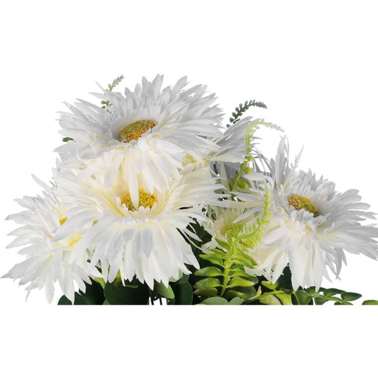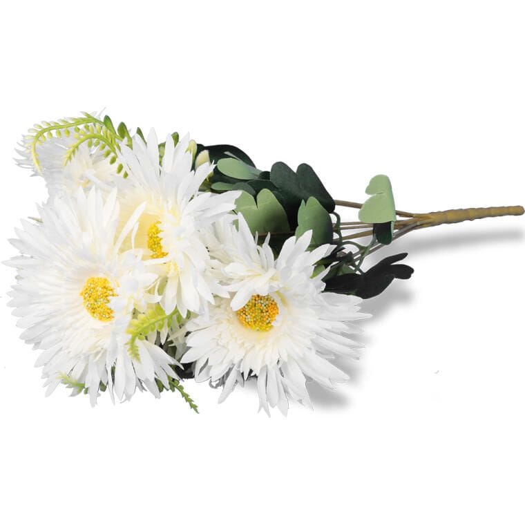 Sztuczny bukiet astrów zachwyca realistycznym wyglądem dzięki wysokiej jakości materiałom, które sprawiają, że kwiaty niemal nie różnią się od żywych. Idealnie sprawdzi się jako samodzielna ozdoba lub element większej kompozycji, wprowadzając elegancki akcent do wnętrza. Z wysokością 42 cm bukiet ten jest uniwersalną dekoracją, która przez długi czas będzie cieszyć oczy bez potrzeby pielęgnacji, nadając każdemu pomieszczeniu świeżości i uroku.