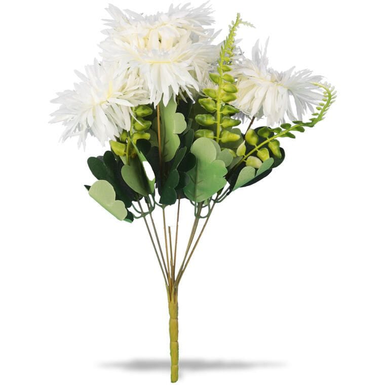 BUKIET 9 ASTRÓW Z PAPROTKAMI 42 CM KOLOR BIAŁY