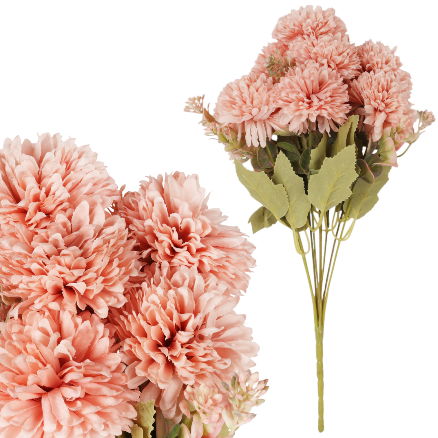 BUKIET 9 CHRYZANTEM sztucznych kwiatów ZŁOCIENI do wazonu KOMPOZYCJA ŁOSOSIOWA