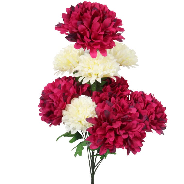 Przedstawiamy bukiet sztucznych chryzantem, który składa się z dziewięciu eleganckich kwiatów, w tym pięciu dużych o średnicy 23 cm oraz czterech mniejszych o średnicy 14 cm. Wykonany z materiałów najwyższej jakości, ten bukiet wygląda tak naturalnie, że do złudzenia przypomina żywe kwiaty. Jako samodzielna dekoracja lub element większej kompozycji, doskonale ozdobi każde wnętrze, wprowadzając przytulny klimat i stylowy akcent. Kolor bordowo-biały nadaje mu wyjątkowego charakteru, sprawiając, że idealnie pasuje do różnorodnych aranżacji. Bukiet sztucznych chryzantem o długości 70 cm wspaniale prezentuje się w wazonach, na stołach czy jako ozdoba na specjalne okazje, dodając elegancji każdemu pomieszczeniu. Wybierając ten bukiet, zyskujesz piękną i trwałą dekorację, która nie wymaga pielęgnacji, pozwalając Ci cieszyć się jego urodą przez długi czas.