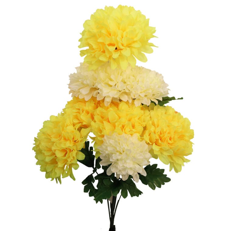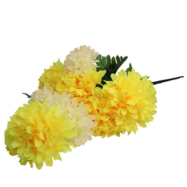 BUKIET 9 DUŻYCH CHRYZANTEM ŻÓŁTO KREMOWYCH