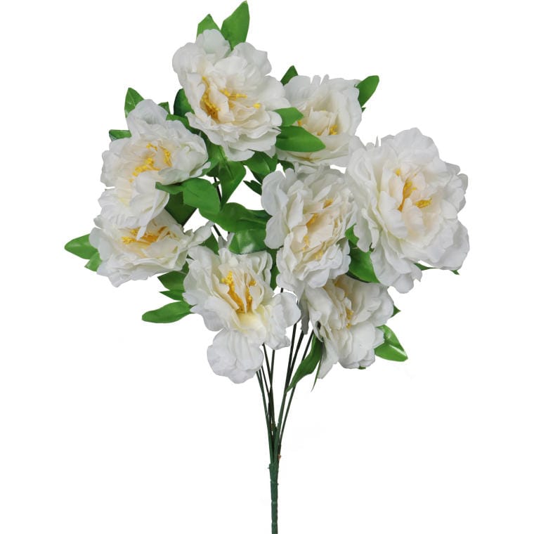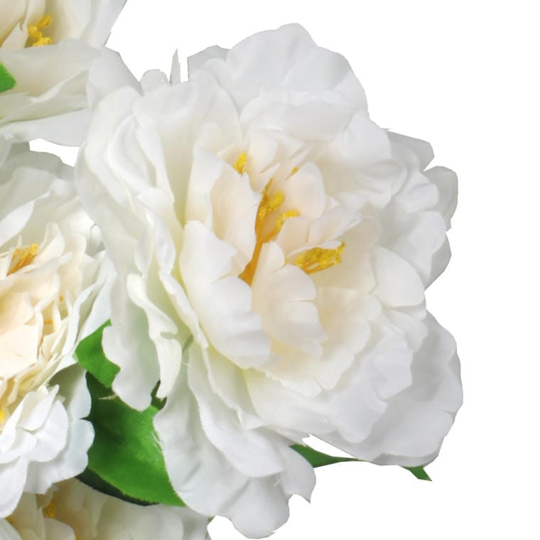 Bukiet dziewięciu białych piwonii o wysokości 48 cm to zachwycająca kompozycja, która wprowadza do wnętrza elegancję i świeżość. Starannie wykonane kwiaty doskonale imitują naturalne piwonie, co sprawia, że wyglądają niezwykle realistycznie. Ich czysty, biały kolor symbolizuje niewinność i harmonię, dodając lekkości każdemu pomieszczeniu.