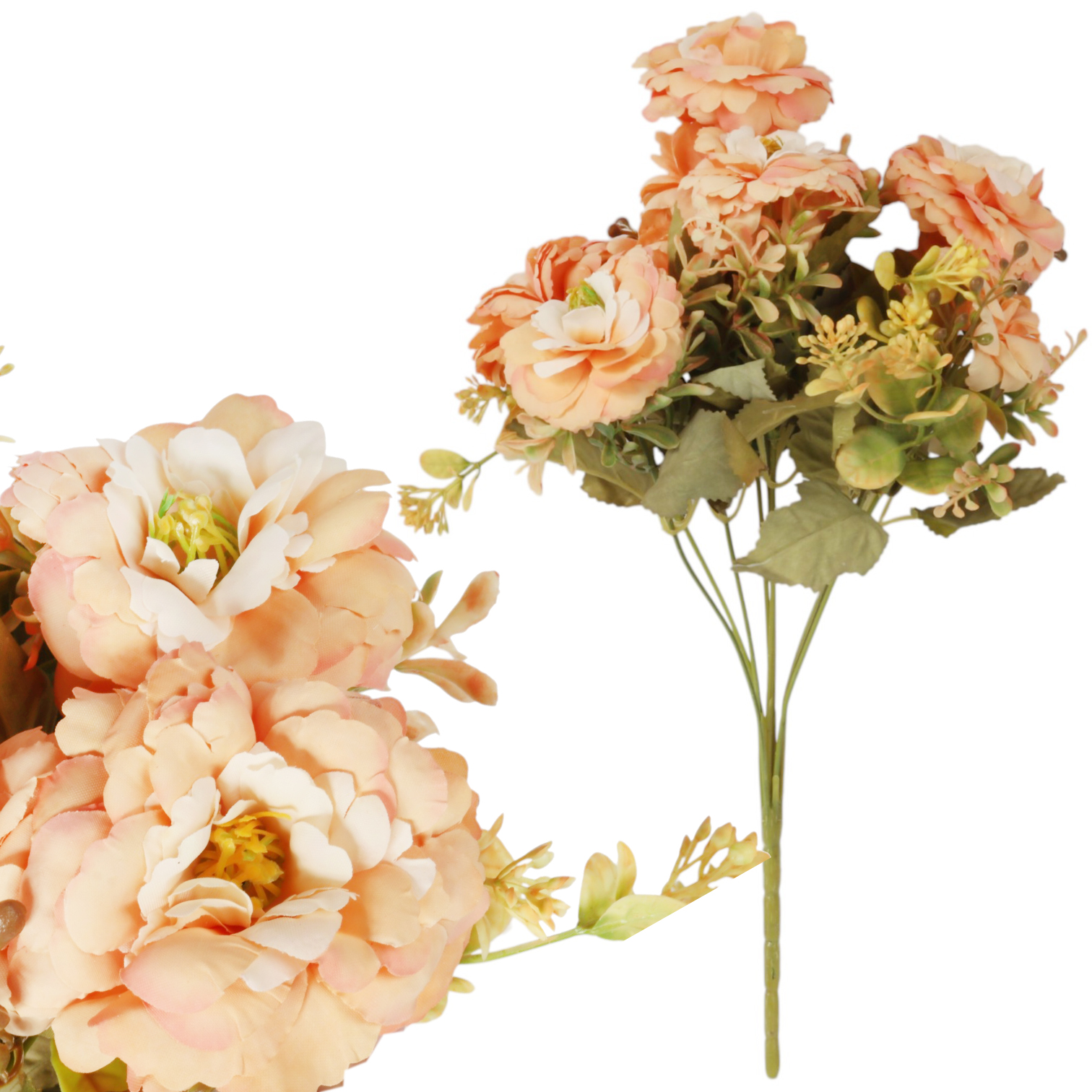 BUKIET 9 PIWONII Z DODATKAMI sztuczne kwiaty do wazonu KOMPOZYCJA kremowa 37 cm