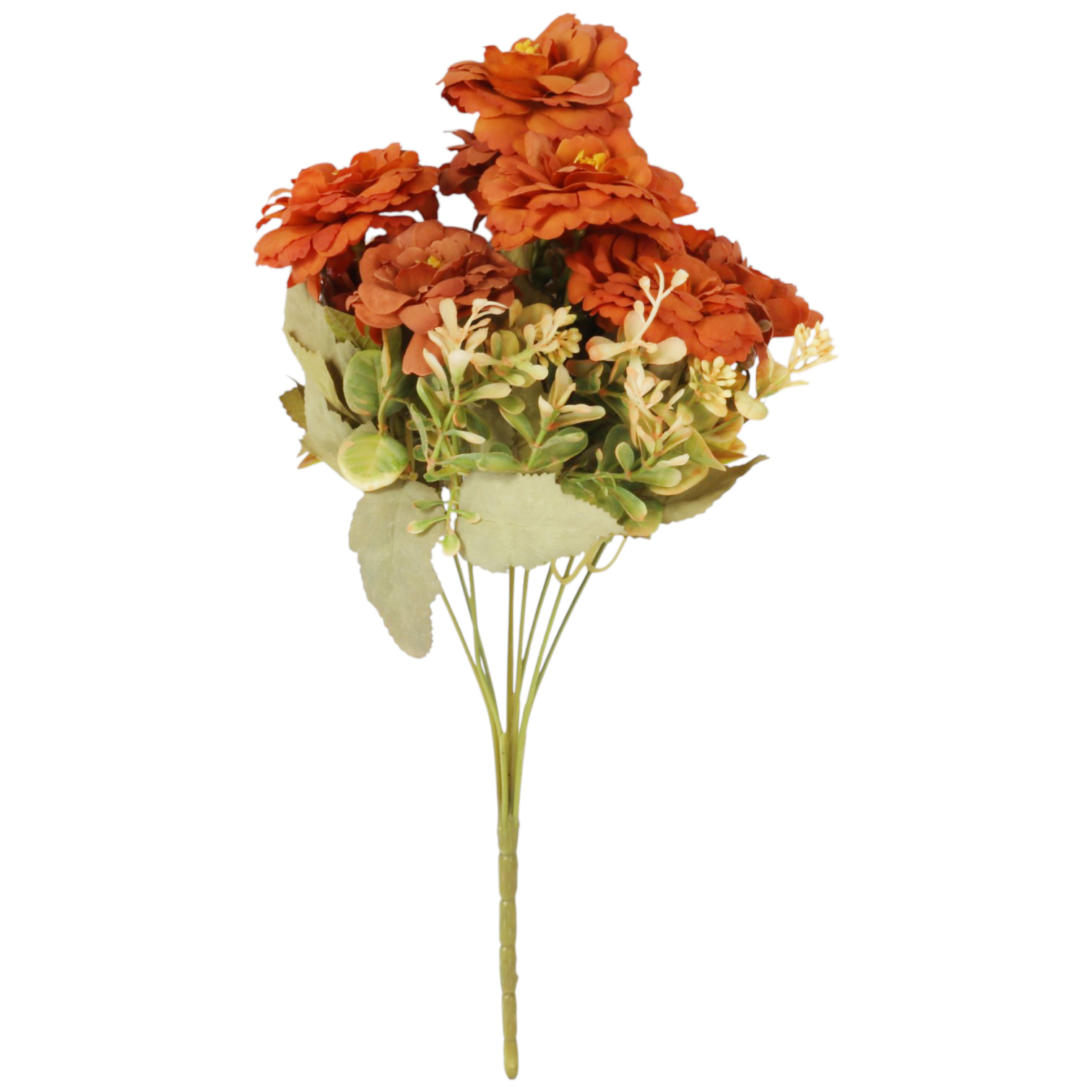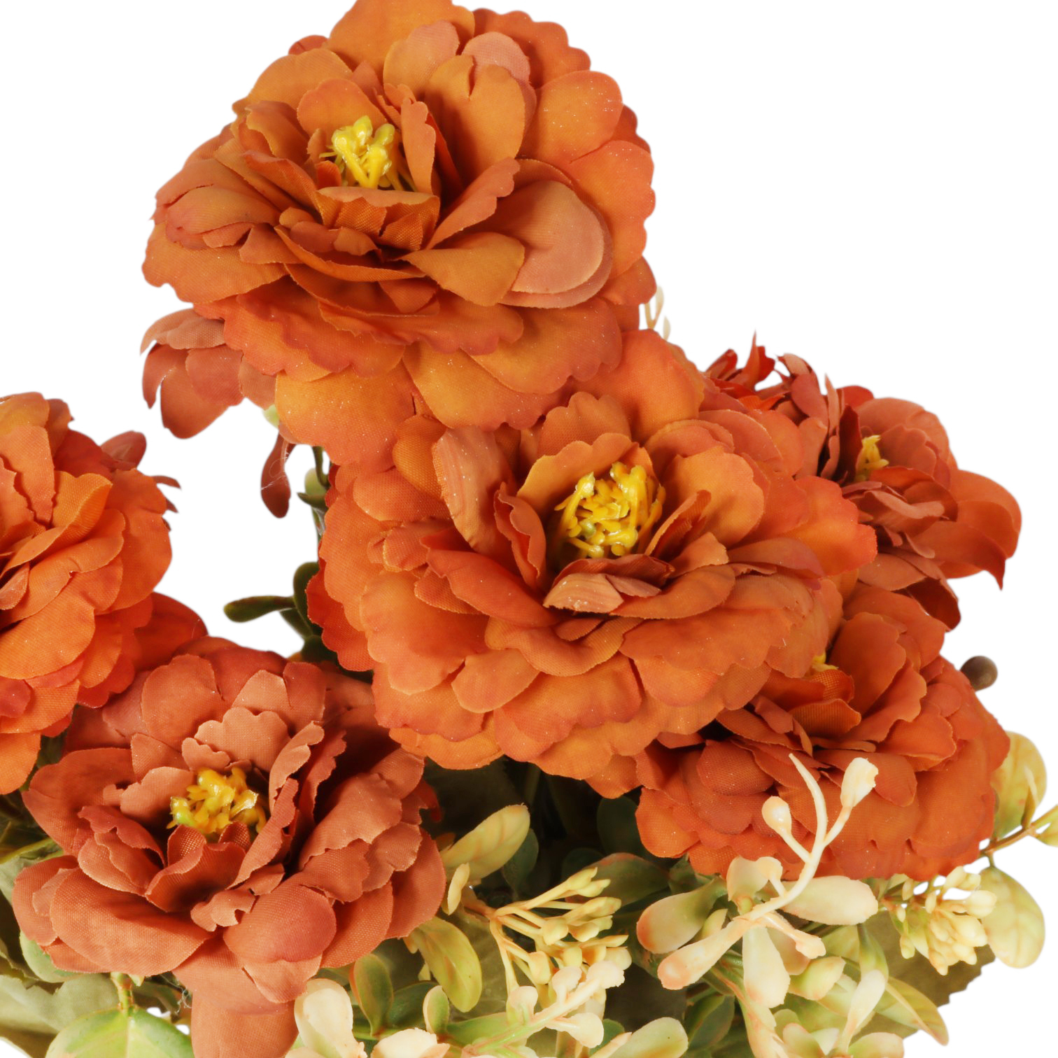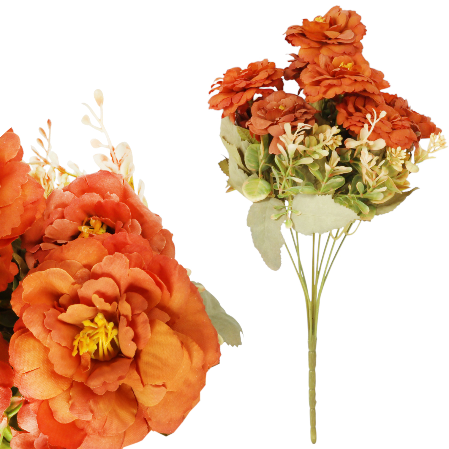 BUKIET 9 PIWONII Z DODATKAMI sztuczne kwiaty do wazonu KOMPOZYCJA pomarańczowa 37 cm