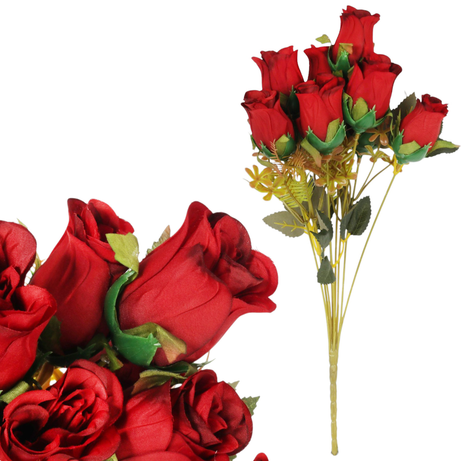 Bukiet sztucznych kwiatów RÓŻY o wysokości 42 cm, to wyjątkowa dekoracja, która zachwyca elegancją i naturalnym wyglądem. Wykonany z wysokiej jakości materiałów, do złudzenia przypomina żywe kwiaty, dzięki czemu wprowadza do wnętrza ciepło, przytulność. Bukiet doskonale prezentuje się jako samodzielna ozdoba w wazonie, a także jako element większych kompozycji, stroików czy dekoracji wiosennych, podkreślając ich wyjątkowy charakter. Intensywne kolory kwiatów pięknie komponują się z różnorodnymi dodatkami, tworząc efektowną całość pasującą zarówno do nowoczesnych, jak i tradycyjnych wnętrz. To ponadczasowa dekoracja, która nie wymaga pielęgnacji, a jednocześnie gwarantuje trwały i elegancki efekt wizualny przez wiele sezonów.