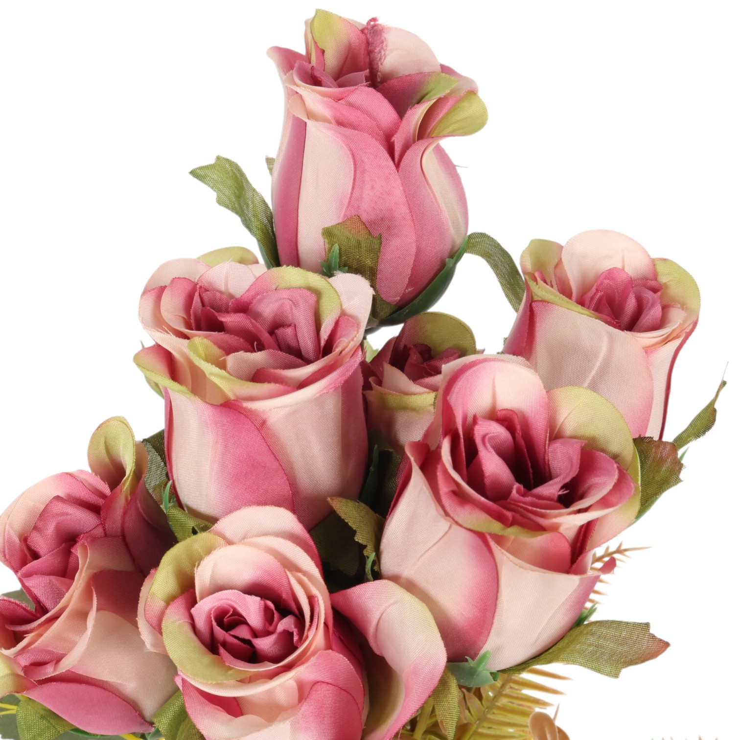 Bukiet sztucznych kwiatów RÓŻY o wysokości 42 cm, to wyjątkowa dekoracja, która zachwyca elegancją i naturalnym wyglądem. Wykonany z wysokiej jakości materiałów, do złudzenia przypomina żywe kwiaty, dzięki czemu wprowadza do wnętrza ciepło, przytulność. Bukiet doskonale prezentuje się jako samodzielna ozdoba w wazonie, a także jako element większych kompozycji, stroików czy dekoracji wiosennych, podkreślając ich wyjątkowy charakter. Intensywne kolory kwiatów pięknie komponują się z różnorodnymi dodatkami, tworząc efektowną całość pasującą zarówno do nowoczesnych, jak i tradycyjnych wnętrz. To ponadczasowa dekoracja, która nie wymaga pielęgnacji, a jednocześnie gwarantuje trwały i elegancki efekt wizualny przez wiele sezonów.
