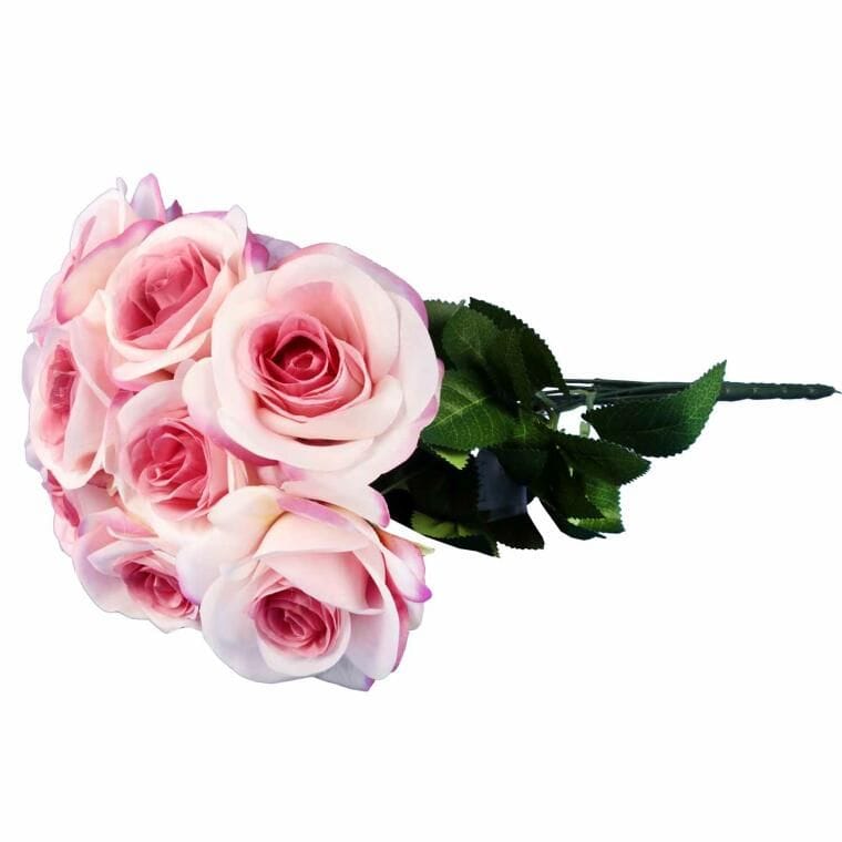 Sztuczny kwiat BUKIET 9 PIĘKNYCH RÓŻ to wyjątkowa dekoracja, która dzięki zastosowaniu najwyższej jakości materiałów wygląda niezwykle realistycznie, do złudzenia przypominając prawdziwe kwiaty. Precyzyjne wykonanie sprawia, że róże doskonale oddają naturalne detale, co czyni bukiet idealnym wyborem zarówno jako samodzielna ozdoba, jak i element większych kompozycji florystycznych. Bukiet 9 róż świetnie nadaje się do dekoracji wnętrz, takich jak domy, biura, restauracje czy hotele, wprowadzając elegancję, świeżość i klasyczny styl do każdej przestrzeni. Jego wysokość, wynosząca 44 cm, sprawia, że pięknie prezentuje się w wazonach, dodając subtelnego uroku i harmonii. Sztuczne róże nie wymagają pielęgnacji, co czyni je praktycznym rozwiązaniem na długotrwałe ozdabianie wnętrz. Dzięki trwałości materiałów, bukiet zachowuje swój estetyczny wygląd przez cały rok, stanowiąc idealną alternatywę dla żywych kwiatów. To doskonały wybór dla osób ceniących piękno i wygodę, które pragną wprowadzić do swojego otoczenia stylowe, naturalnie wyglądające dekoracje bez konieczności ich regularnej pielęgnacji.
