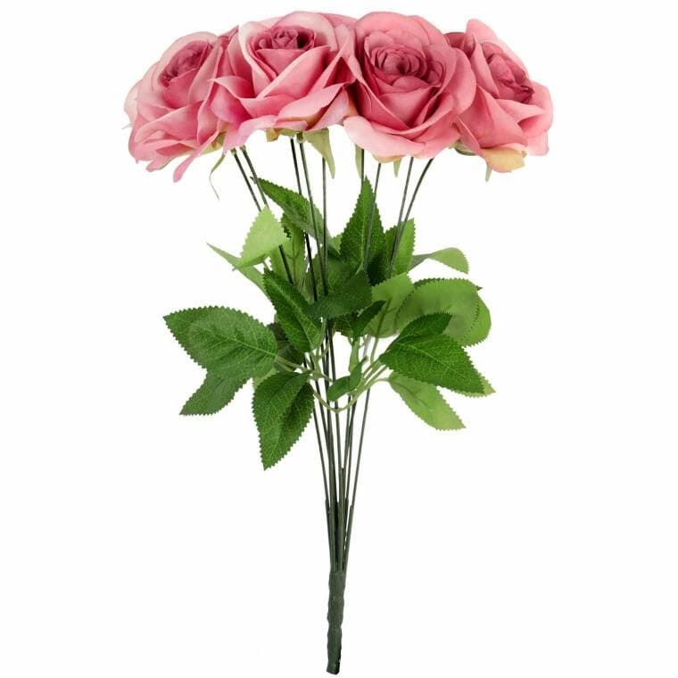 Sztuczny kwiat BUKIET 9 PIĘKNYCH RÓŻ to wyjątkowa dekoracja, która dzięki zastosowaniu najwyższej jakości materiałów wygląda niezwykle realistycznie, do złudzenia przypominając prawdziwe kwiaty. Precyzyjne wykonanie sprawia, że róże doskonale oddają naturalne detale, co czyni bukiet idealnym wyborem zarówno jako samodzielna ozdoba, jak i element większych kompozycji florystycznych. Bukiet 9 róż świetnie nadaje się do dekoracji wnętrz, takich jak domy, biura, restauracje czy hotele, wprowadzając elegancję, świeżość i klasyczny styl do każdej przestrzeni. Jego wysokość, wynosząca 44 cm, sprawia, że pięknie prezentuje się w wazonach, dodając subtelnego uroku i harmonii. Sztuczne róże nie wymagają pielęgnacji, co czyni je praktycznym rozwiązaniem na długotrwałe ozdabianie wnętrz. Dzięki trwałości materiałów, bukiet zachowuje swój estetyczny wygląd przez cały rok, stanowiąc idealną alternatywę dla żywych kwiatów. To doskonały wybór dla osób ceniących piękno i wygodę, które pragną wprowadzić do swojego otoczenia stylowe, naturalnie wyglądające dekoracje bez konieczności ich regularnej pielęgnacji.