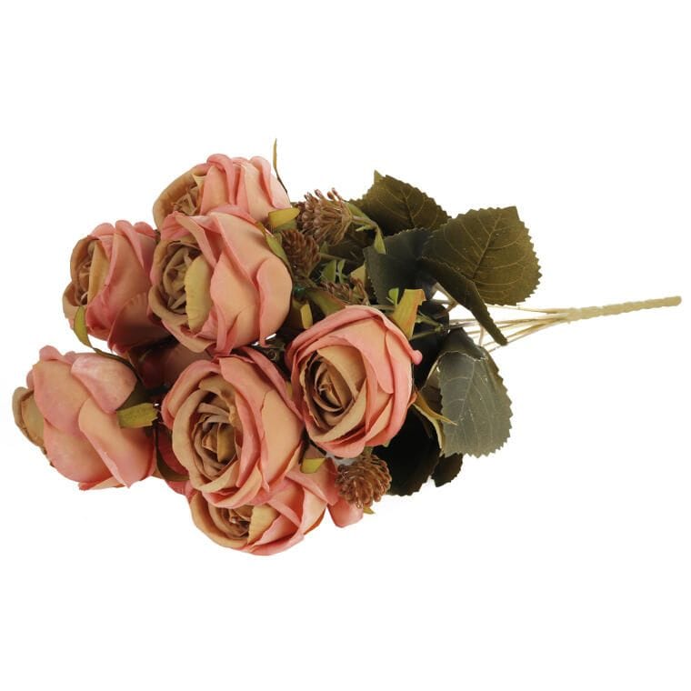 BUKIET 9 RÓŻ Z DODATKAMI 40 CM KOLOR ŁOSOSIOWY