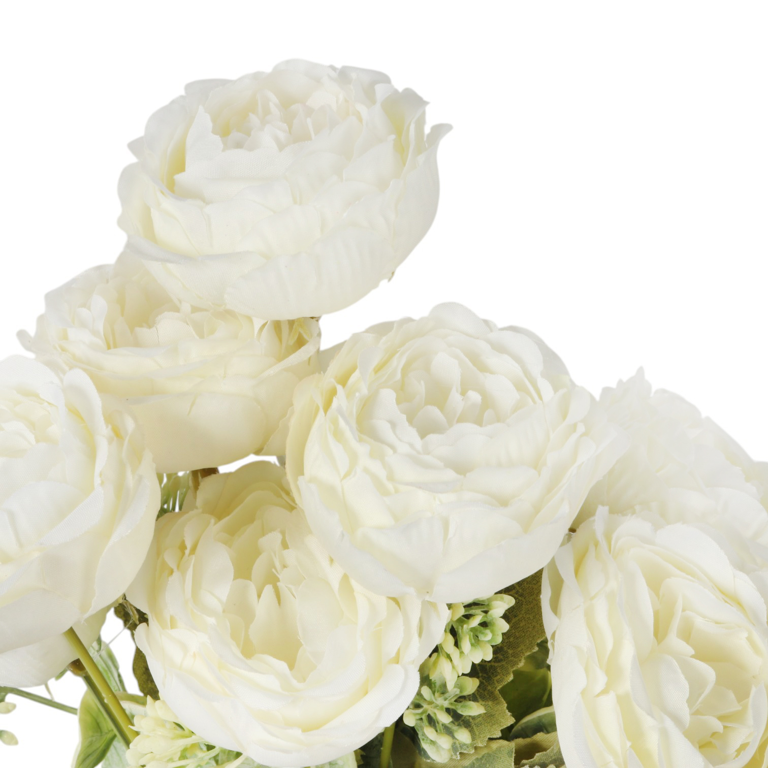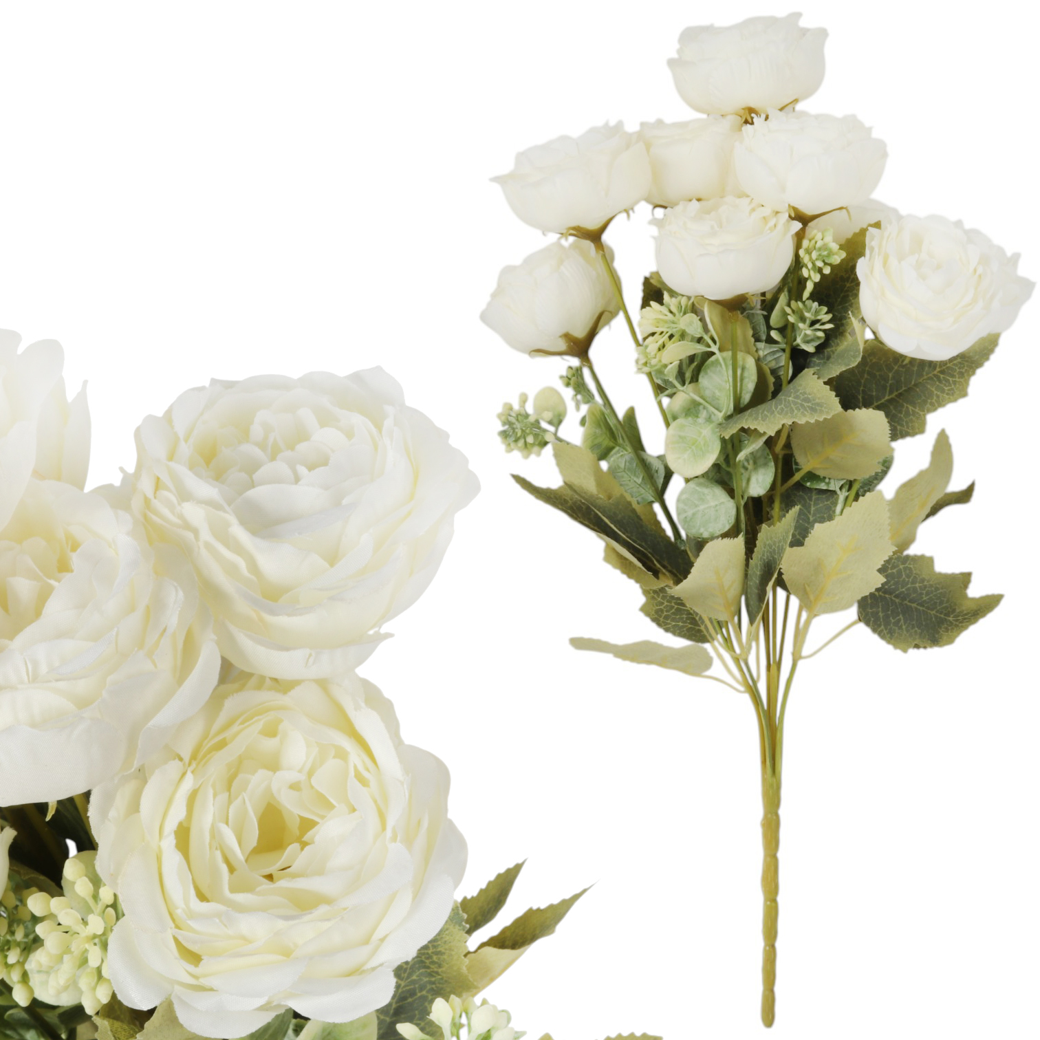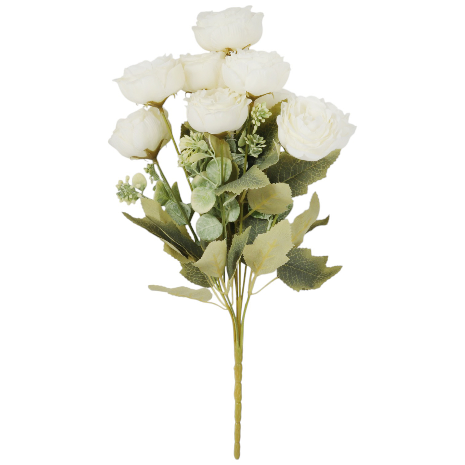 BUKIET 9 RÓŻ Z DODATKAMI sztuczne kwiaty do wazonu KOMPOZYCJA biała 40 cm