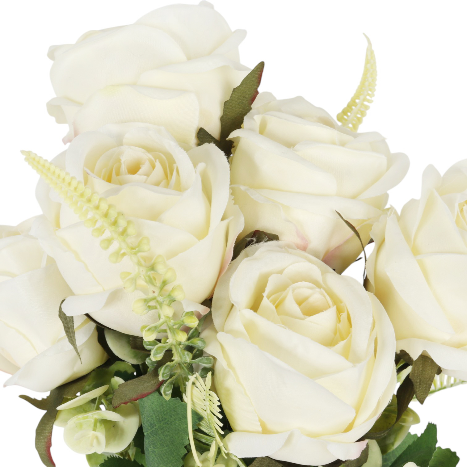 BUKIET 9 RÓŻ Z DODATKAMI sztuczne kwiaty do wazonu KOMPOZYCJA biała 46 cm