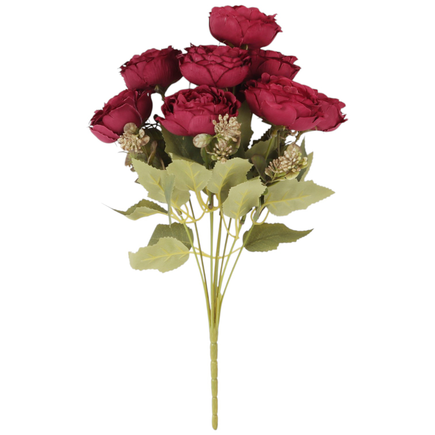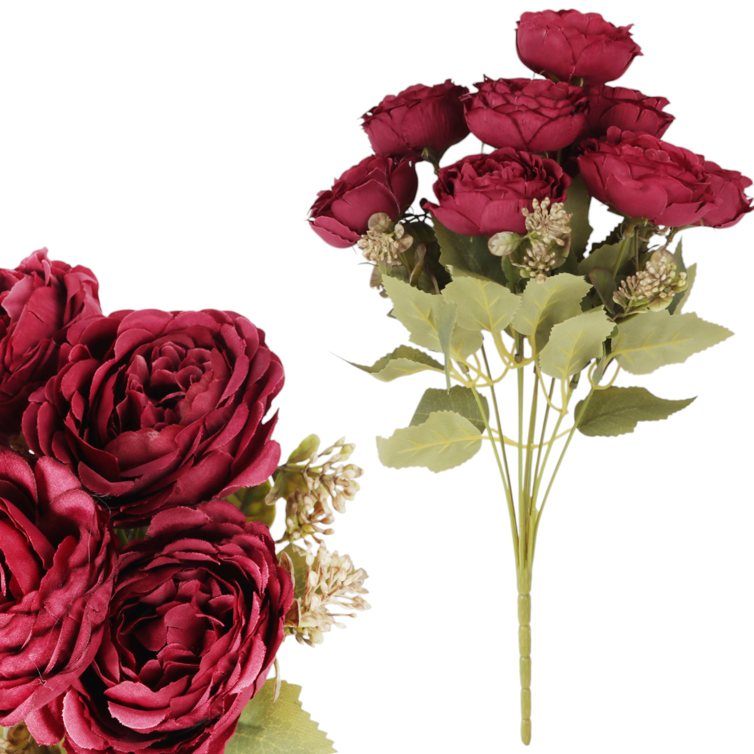 BUKIET 9 RÓŻ Z DODATKAMI sztuczne kwiaty do wazonu KOMPOZYCJA bordowa 40 cm