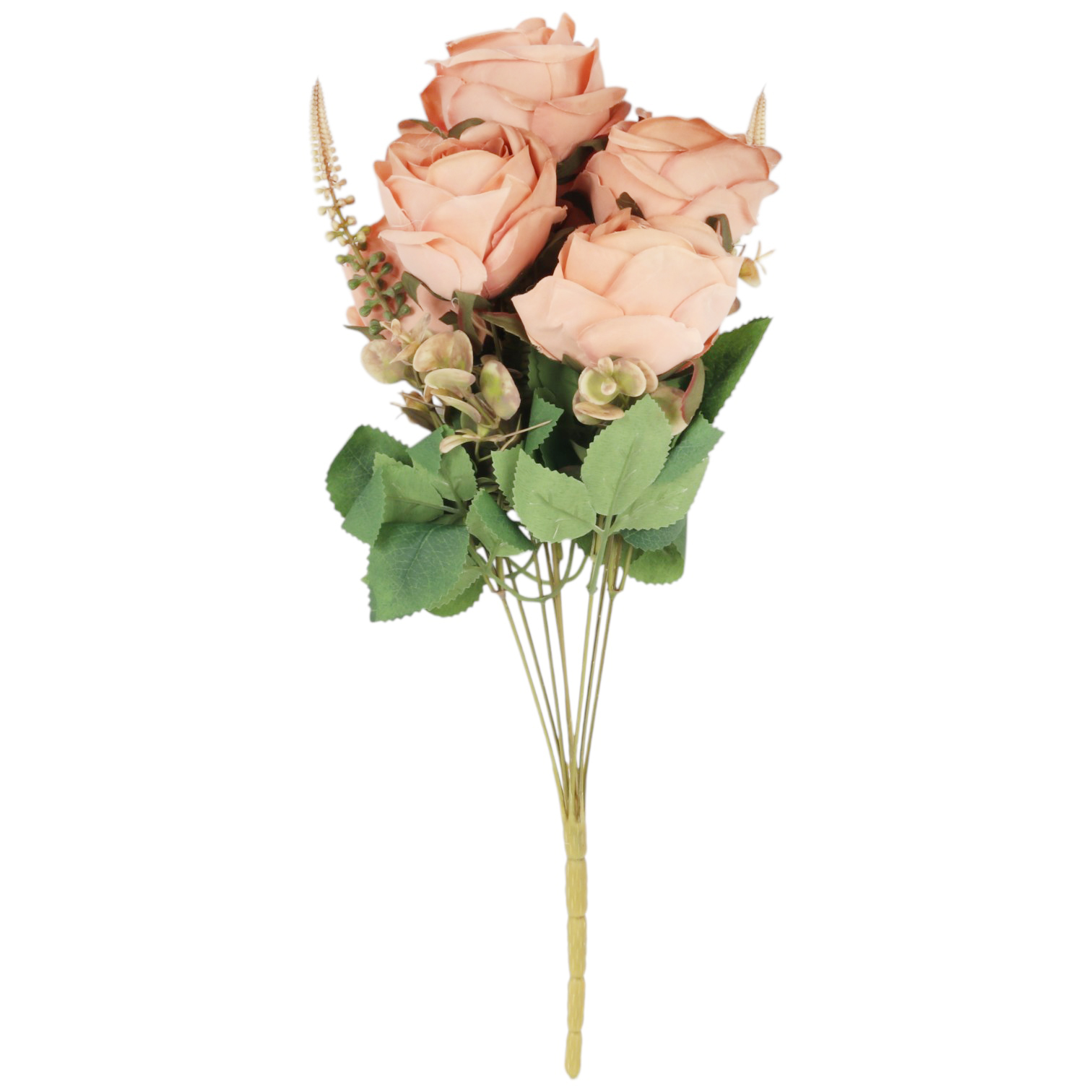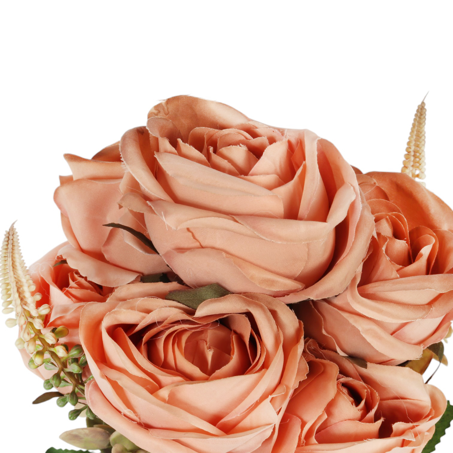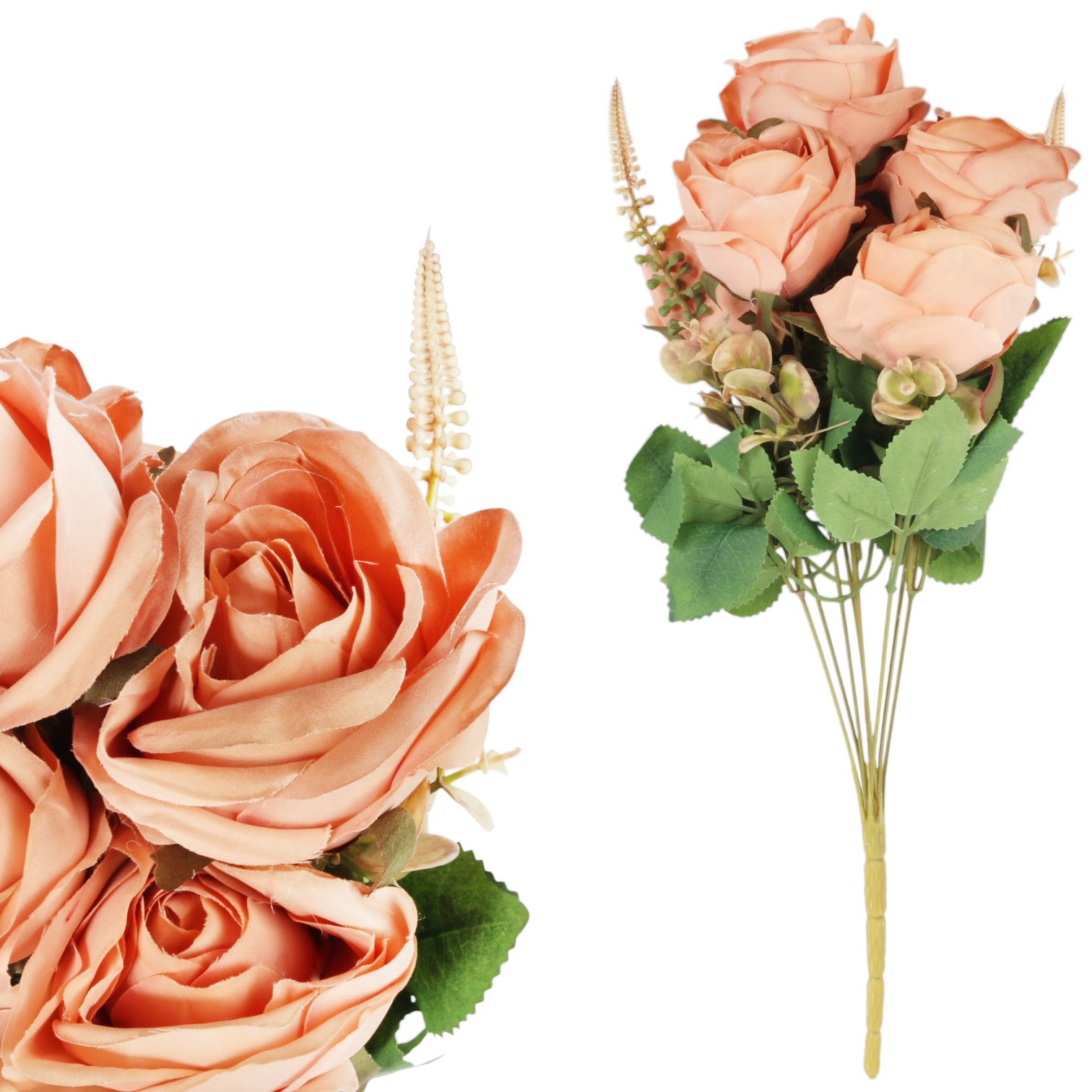 BUKIET 9 RÓŻ Z DODATKAMI sztuczne kwiaty do wazonu KOMPOZYCJA łososiowa 46 cm