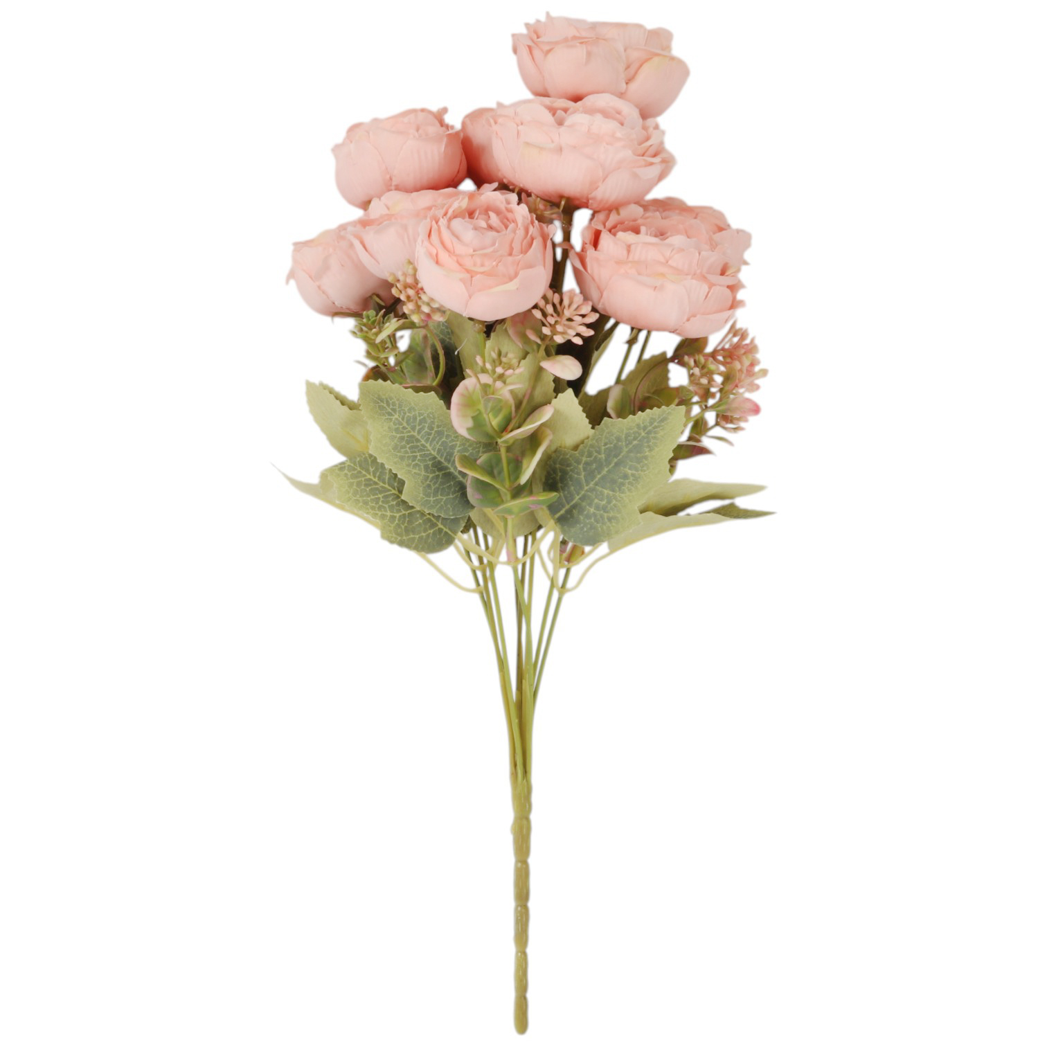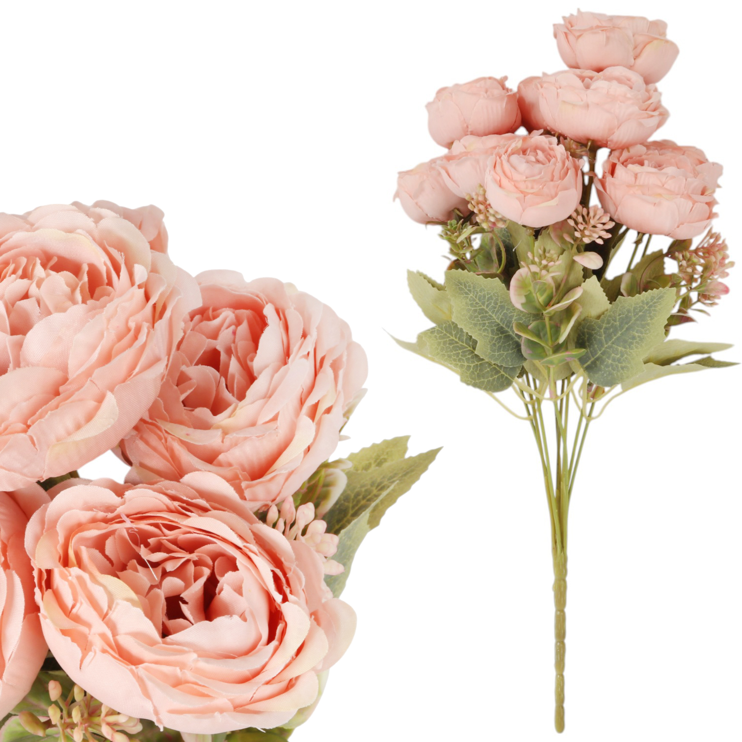 BUKIET 9 RÓŻ Z DODATKAMI sztuczne kwiaty do wazonu KOMPOZYCJA różowa 40 cm