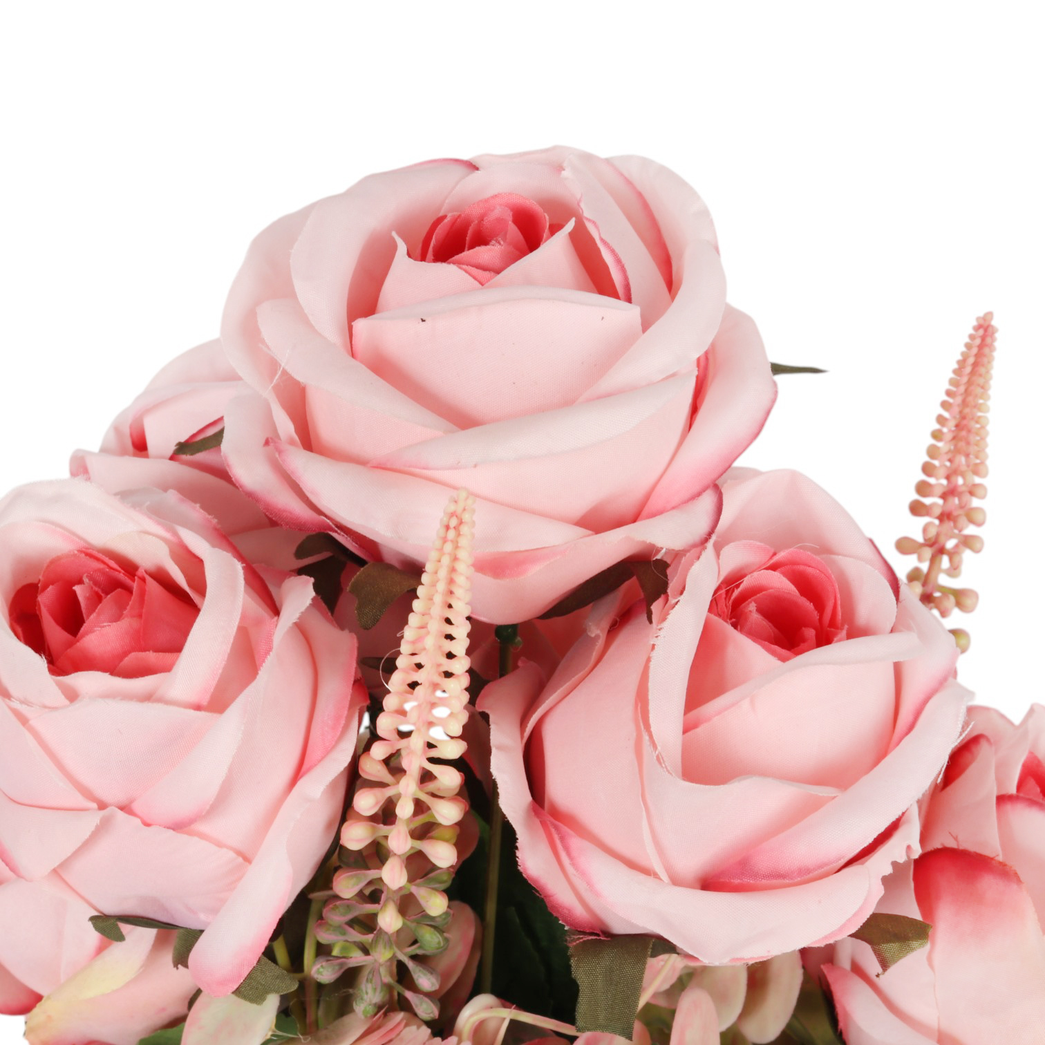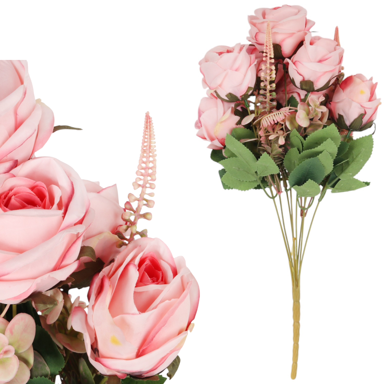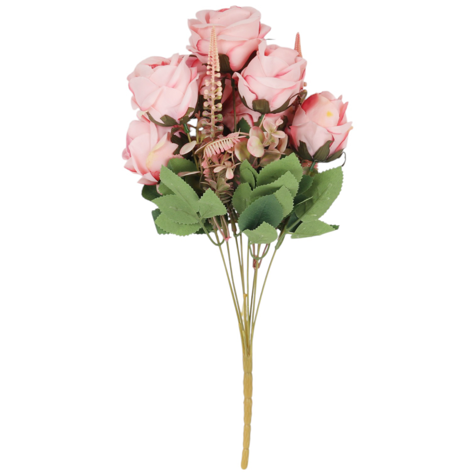 BUKIET 9 RÓŻ Z DODATKAMI sztuczne kwiaty do wazonu KOMPOZYCJA różowa 46 cm
