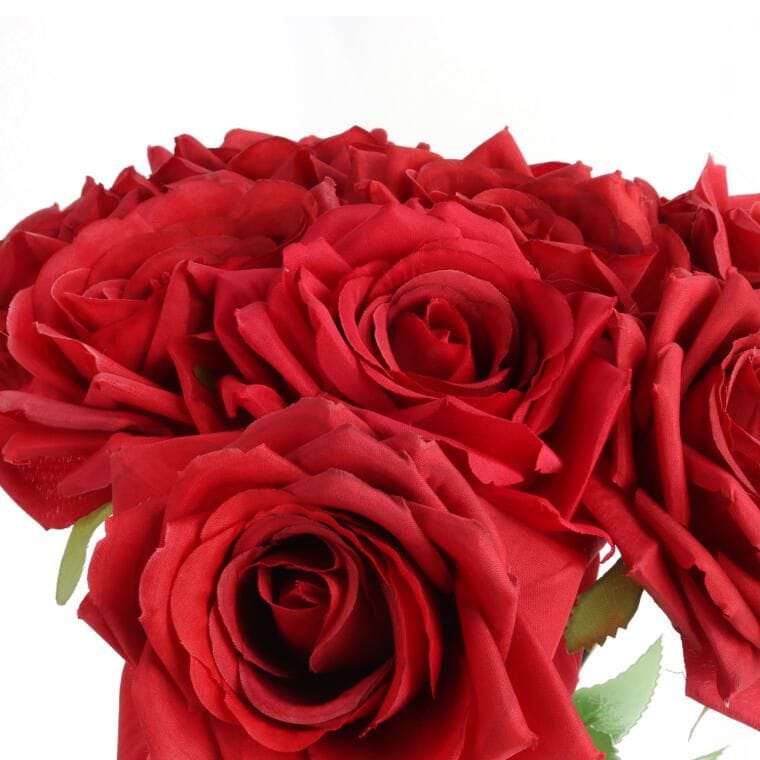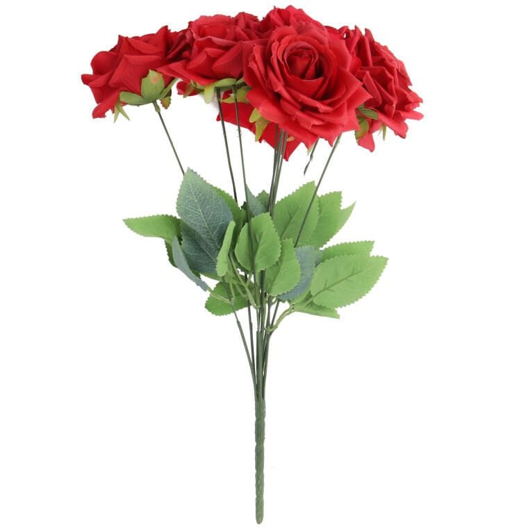 Bukiet sztucznych róż, składający się z 9 realistycznie wykonanych kwiatów o wysokości 48 cm, to elegancka dekoracja, która dzięki najwyższej jakości materiałom wiernie odwzorowuje wygląd żywych róż, nadając wnętrzu naturalnego uroku i klasy. Ten wyjątkowy bukiet doskonale sprawdzi się zarówno jako samodzielny akcent dekoracyjny w wazonie, jak i element większej kompozycji florystycznej, idealnej do salonu, sypialni czy biura. Sztuczne róże to doskonały wybór, który ożywi i upiększy każde wnętrze, dodając mu ponadczasowej elegancji i wyrafinowania, zachowując jednocześnie świeży wygląd na długie lata.