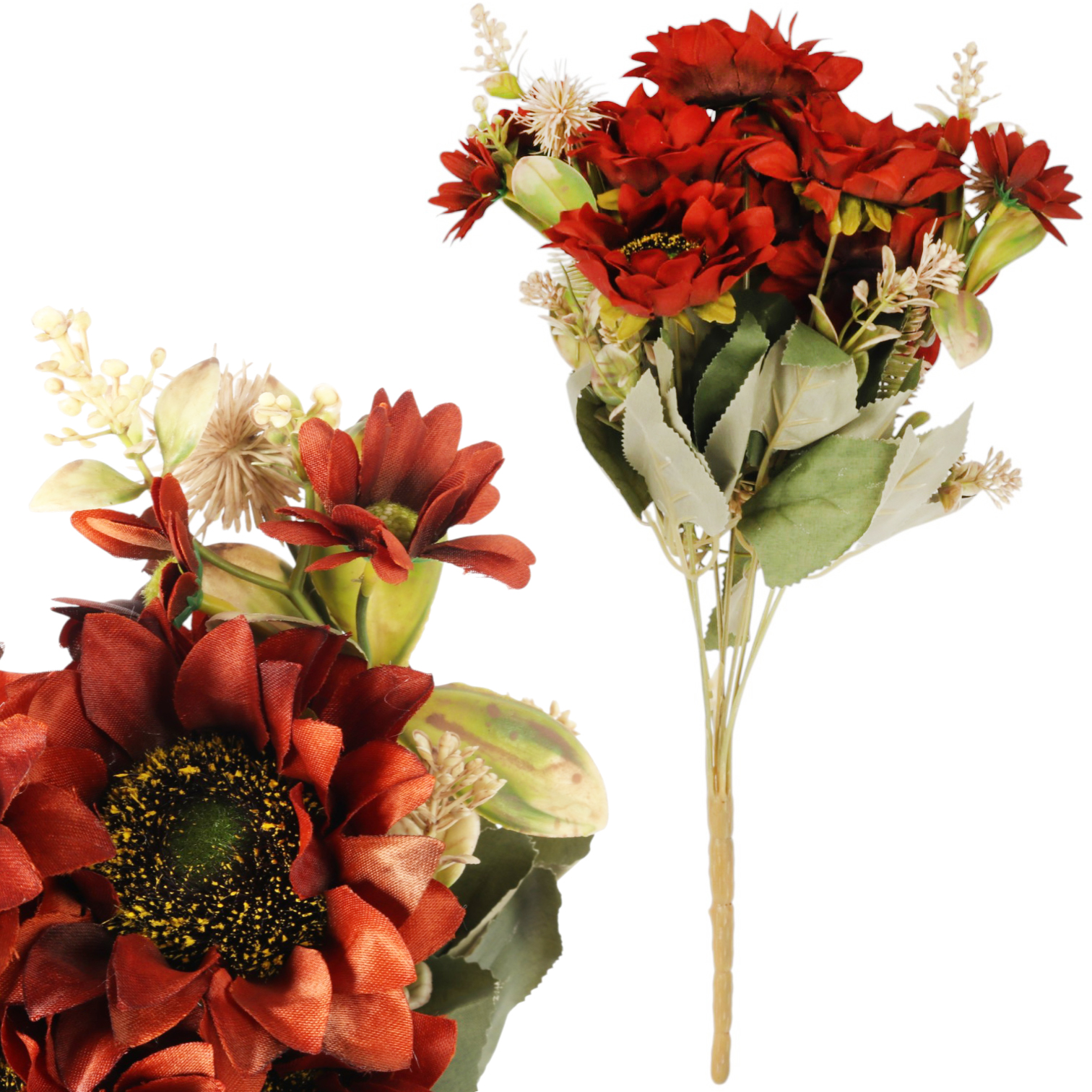 BUKIET 9 SŁONECZNIKÓW Z DODATKAMI sztuczne kwiaty do wazonu KOMPOZYCJA brązowa 43 cm