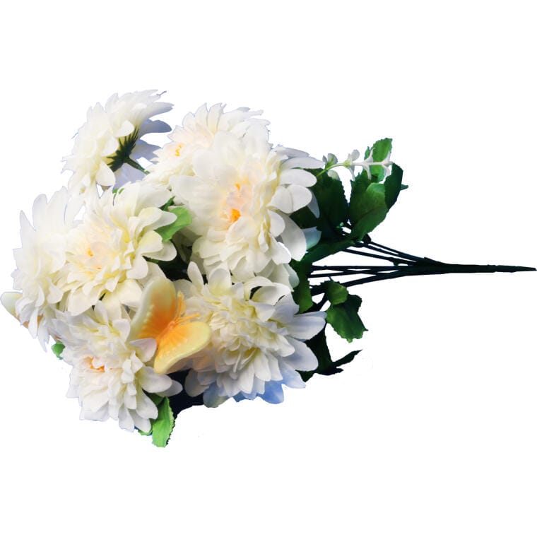 BUKIET 9 SZTUCZNYCH BIAŁYCH MARGARETEK Z MOTYLKAMI – DEKORACJA 40CM