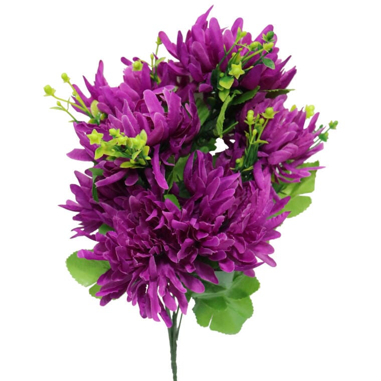 Nasze sztuczne kwiaty w postaci bukietu składającego się z siedmiu strzępiastych chryzantem z dodatkami to idealna dekoracja, która doda uroku Twojemu wnętrzu. Wykonane z materiałów o wysokiej jakości, te realistyczne chryzantemy doskonale imitują żywe rośliny, co sprawia, że stają się efektownym akcentem zarówno jako samodzielna dekoracja, jak i część większej kompozycji florystycznej. Ożywiając przestrzeń, bukiet w intensywnym fioletowym kolorze pięknie ozdobi miejsca pamięci podczas Święta Wszystkich Świętych, wprowadzając jednocześnie wiosenny klimat do Twojego domu. Bukiet o wysokości 35 cm doskonale sprawdzi się w różnych aranżacjach, tworząc przytulną atmosferę w salonie, sypialni czy na tarasie. Wybierz nasz bukiet sztucznych chryzantem, aby cieszyć się ich pięknem przez cały rok, nie martwiąc się o pielęgnację i trwałość.