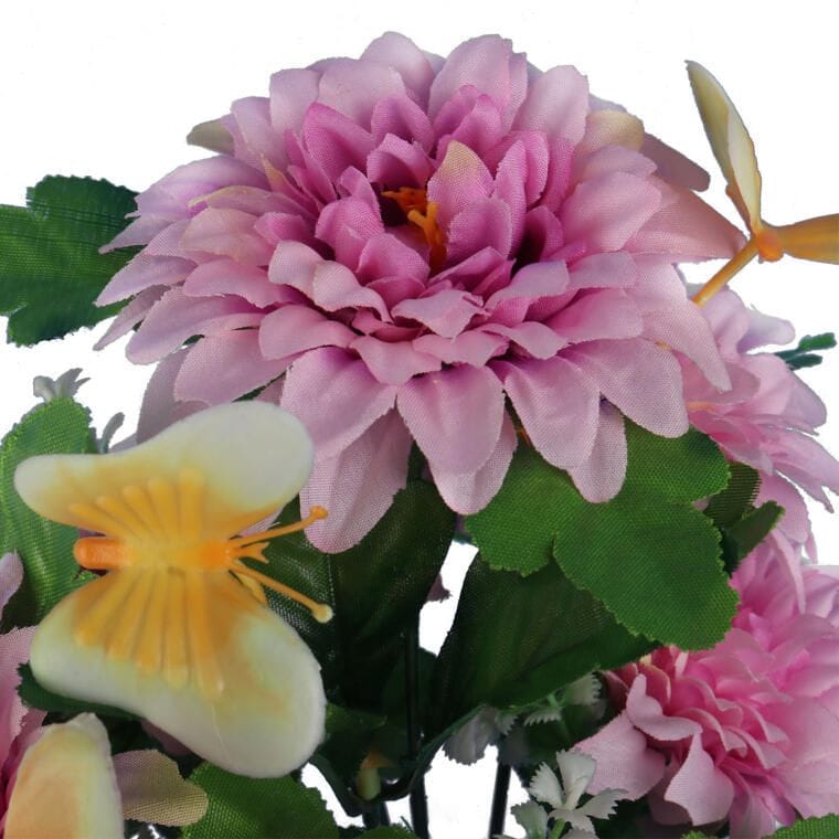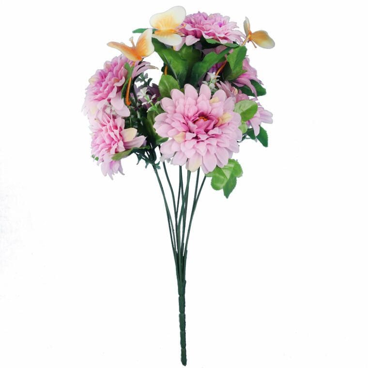 BUKIET FIOLETOWYCH MARGARETEK Z DEKORACYJNYMI MOTYLKAMI – KWIECISTA DEKORACJA 40 CM