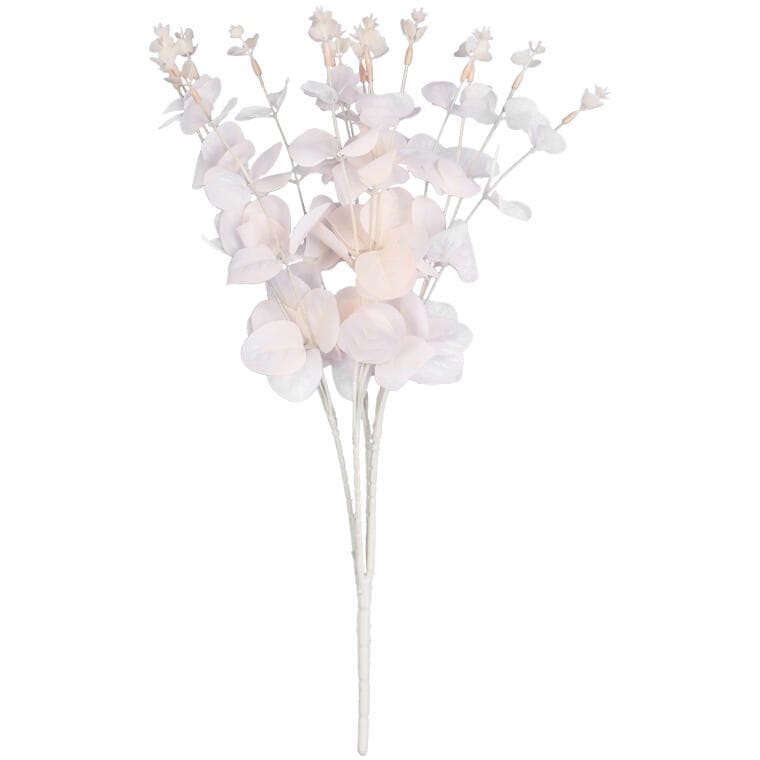 Bukiet sztuczny składający się z piętnastu gałązek z liśćmi eukaliptusa w kolorze kremowym o wysokości 50 cm to elegancka i efektowna dekoracja, która dzięki wysokiej jakości materiałom do złudzenia przypomina naturalne liście. Delikatny, kremowy kolor liści wprowadza do wnętrza subtelny, przytulny i nowoczesny akcent, dzięki czemu bukiet doskonale sprawdzi się zarówno jako samodzielna ozdoba w wazonie, jak i element większych kompozycji florystycznych, stroików czy dekoracji okolicznościowych. Starannie wykonane gałązki zapewniają trwałość i realistyczny wygląd, dzięki czemu dekoracja będzie cieszyć oko przez wiele sezonów, podkreślając elegancję i wyjątkowy styl każdej przestrzeni.