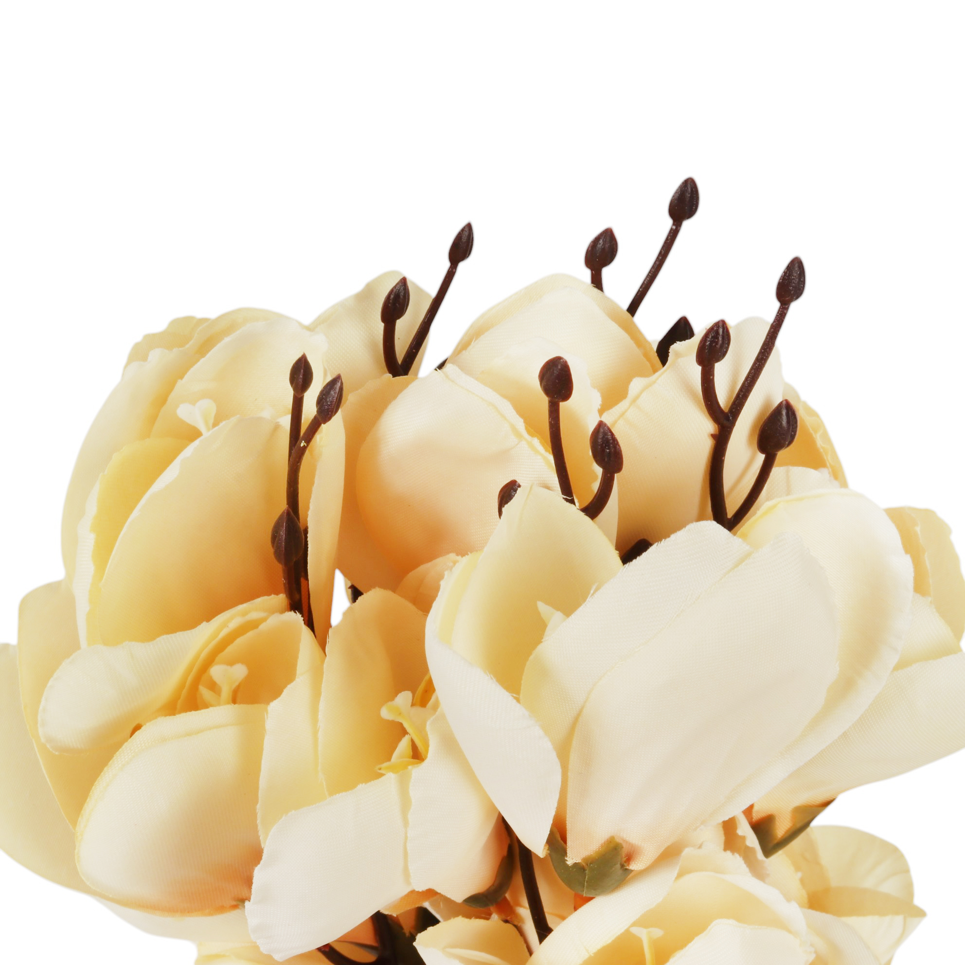 ☀️ Bukiet Sztucznych MAGNOLII, to doskonały wybór dla osób pragnących dodać elegancji i uroku każdemu wnętrzu. Z wysokością ok. 43 cm, ten stylowy bukiet składa się z  gałązek z efektownymi  kwiatami, których wysokość wynosi od ok.8 cm. Dzięki starannemu wykonaniu, sztuczne słoneczniki zachowują swój świeży wygląd przez długi czas, co czyni je idealnym rozwiązaniem do wzbogacenia aranżacji wnętrz.