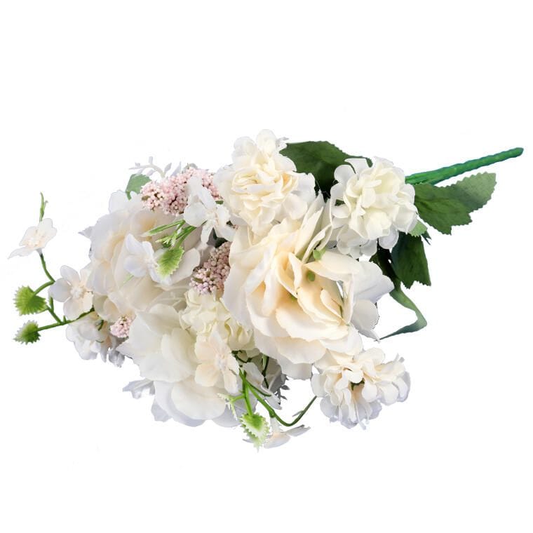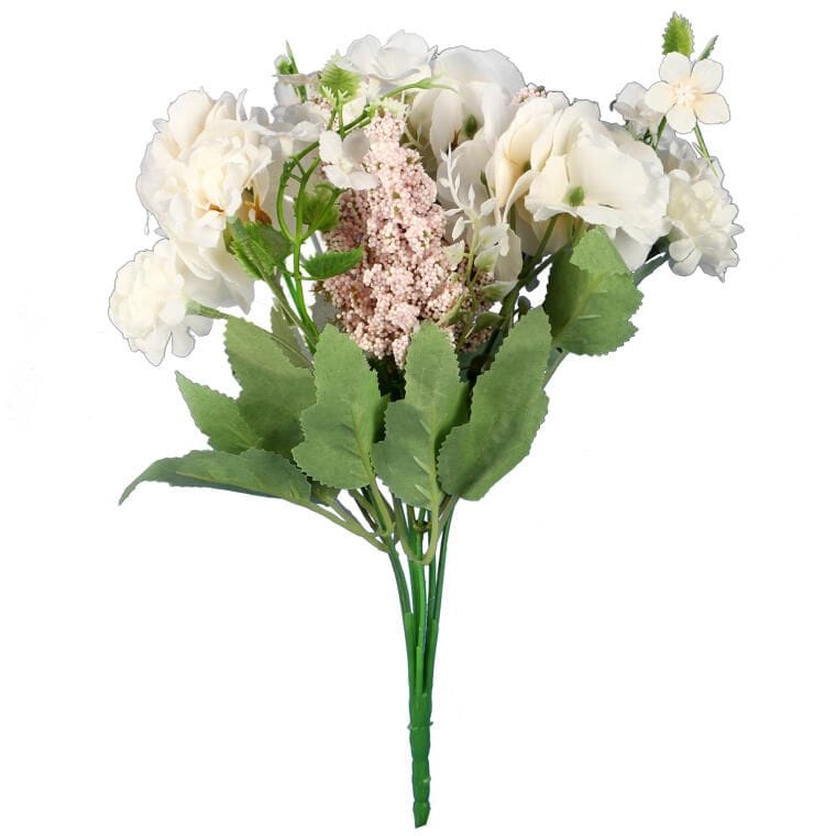 Kwiat sztuczny BUKIECIK KWIATÓW MIESZANYCH Z HORTENSJĄ to niezwykle elegancka dekoracja, która doda wyjątkowego uroku każdemu wnętrzu. Wykonany z materiałów najwyższej jakości, ten bukiet do złudzenia imituje świeże kwiaty, co sprawia, że wygląda niezwykle realistycznie. Bukiet o długości 32 cm świetnie sprawdzi się jako samodzielna ozdoba lub jako część większej kompozycji, skutecznie wzbogacając Twoje otoczenie. Idealny do salonu, sypialni, biura czy na różnorodne wydarzenia, ten bukiet kwiatów wprowadza atmosferę elegancji i radości. Dzięki swojemu olśniewającemu wyglądowi, kwiaty będą cieszyć oko przez cały rok, nie wymagając żadnej pielęgnacji. Wybierz ten wyjątkowy bukiecik z hortensją, aby stworzyć niezapomniane aranżacje, które zachwycą Twoich gości i dodadzą blasku każdemu pomieszczeniu.