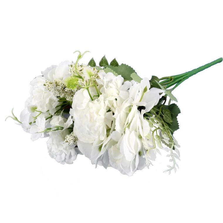 Kwiat sztuczny BUKIECIK KWIATÓW MIESZANYCH Z HORTENSJĄ to niezwykle elegancka dekoracja, która doda wyjątkowego uroku każdemu wnętrzu. Wykonany z materiałów najwyższej jakości, ten bukiet do złudzenia imituje świeże kwiaty, co sprawia, że wygląda niezwykle realistycznie. Bukiet o długości 32 cm świetnie sprawdzi się jako samodzielna ozdoba lub jako część większej kompozycji, skutecznie wzbogacając Twoje otoczenie. Idealny do salonu, sypialni, biura czy na różnorodne wydarzenia, ten bukiet kwiatów wprowadza atmosferę elegancji i radości. Dzięki swojemu olśniewającemu wyglądowi, kwiaty będą cieszyć oko przez cały rok, nie wymagając żadnej pielęgnacji. Wybierz ten wyjątkowy bukiecik z hortensją, aby stworzyć niezapomniane aranżacje, które zachwycą Twoich gości i dodadzą blasku każdemu pomieszczeniu.