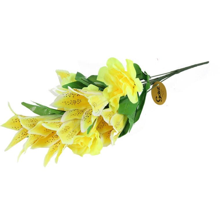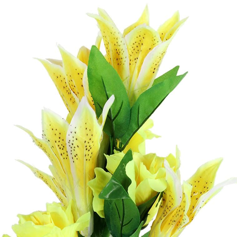BUKIET MIX 9 SZTUCZNYCH KWIATÓW – LILII I RÓŻY KOLORU ŻÓŁTEGO