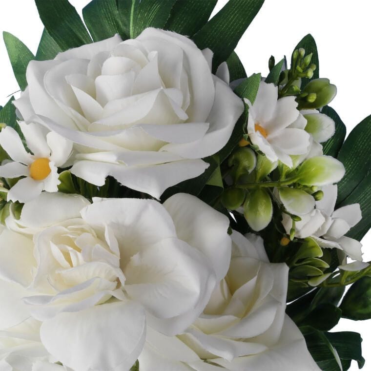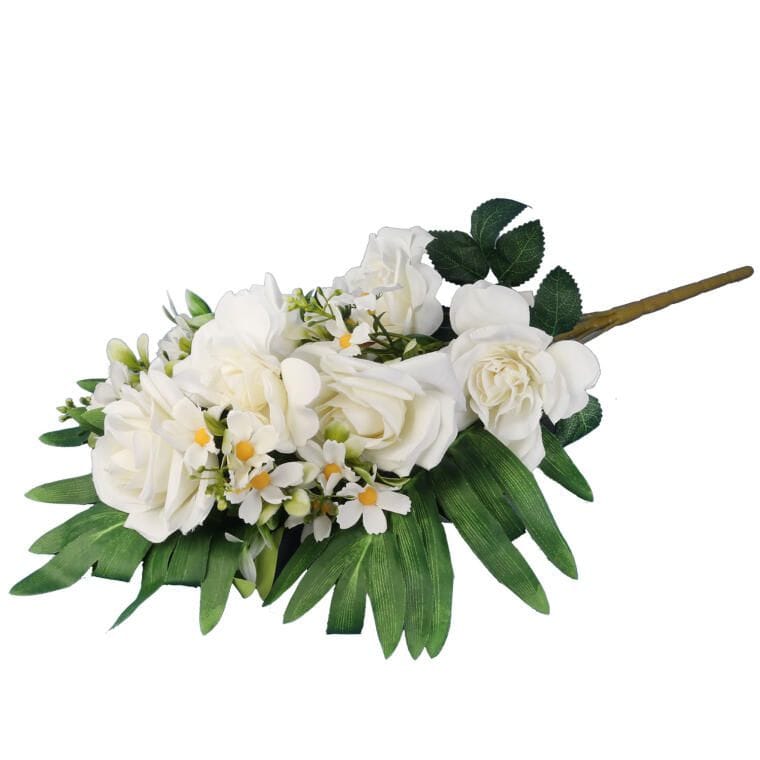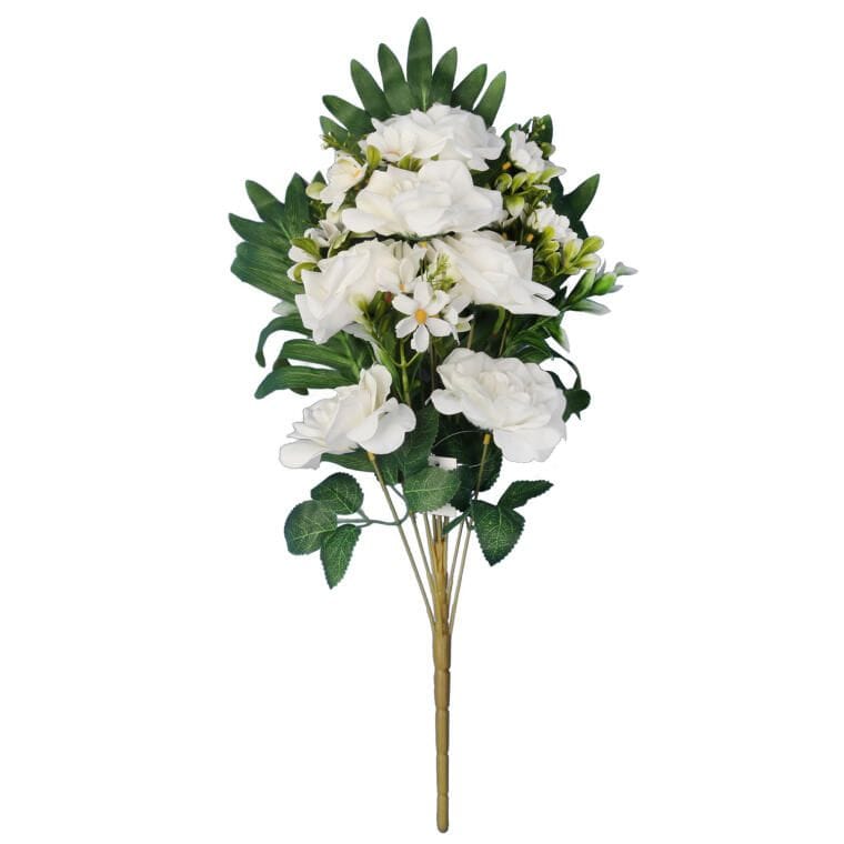 Sztuczny bukiet dalia i hortensja o wysokości 48 cm to elegancka i trwała dekoracja, która do złudzenia przypomina naturalne kwiaty. Wykonany z wysokiej jakości materiałów, zachowuje realistyczny wygląd płatków i liści, dzięki czemu prezentuje się pięknie zarówno w domu, jak i w ogrodzie. Bukiet świetnie sprawdza się jako samodzielna ozdoba w wazonie, w kompozycjach kwiatowych, a także jako elegancka dekoracja nagrobna. Nie wymaga podlewania ani pielęgnacji, pozostając estetyczny przez wiele sezonów. Doskonale komponuje się z aranżacjami w klasycznym, nowoczesnym czy subtelnym stylu naturalnym. To ponadczasowa dekoracja, która wprowadza do otoczenia kolor, świeżość i harmonijną elegancję.