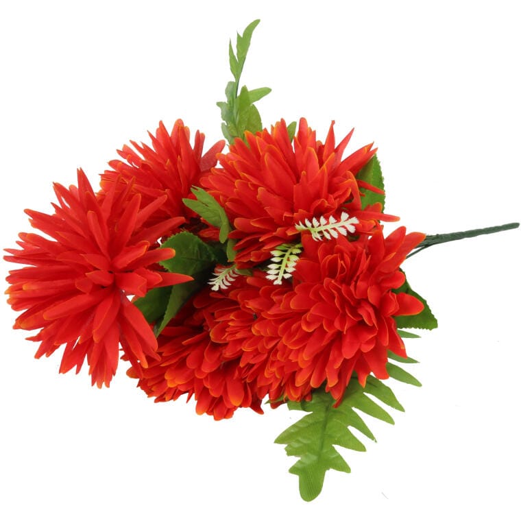 Sztuczny kwiat bukiet 8 chryzantem z liśćmi paproci w kolorze pomarańczowym to zachwycająca dekoracja, która łączy w sobie naturalny wygląd oraz wysoką jakość wykonania. Dzięki zastosowaniu starannie dobranych materiałów, bukiet do złudzenia przypomina żywe kwiaty, co sprawia, że idealnie sprawdzi się jako samodzielna ozdoba lub element większych kompozycji florystycznych. Jego intensywny pomarańczowy kolor wprowadza do przestrzeni energię i ciepło, co czyni go doskonałym wyborem do dekoracji miejsc pamięci podczas Święta Wszystkich Świętych. Bukiet o wysokości 56 cm z łatwością wkomponuje się w różnorodne aranżacje, dodając im elegancji i radosnego charakteru, a jego trwałość zapewnia długotrwałą przyjemność z użytkowania.